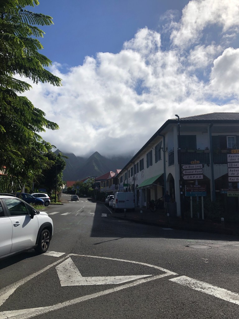 Ce matin, on commence par du van. On emprunte la route des 400 virages, 28km de lacets serrés entre les communes de Cilaos et de L’Entre Deux.