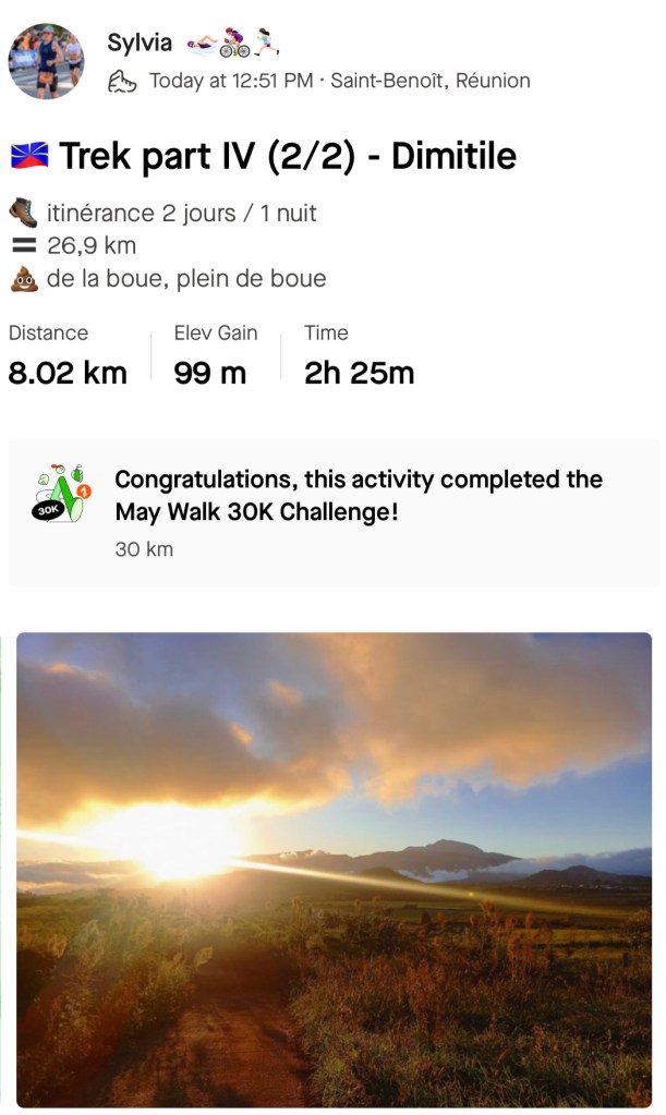À un moment de l’après-midi, on a basculé du massif du Piton des neiges à celui de la Fournaise. Ne me demandez pas où précisément. Tout ce que je sais c’est qu’il y avait de la boue avant et encore de la boue après !