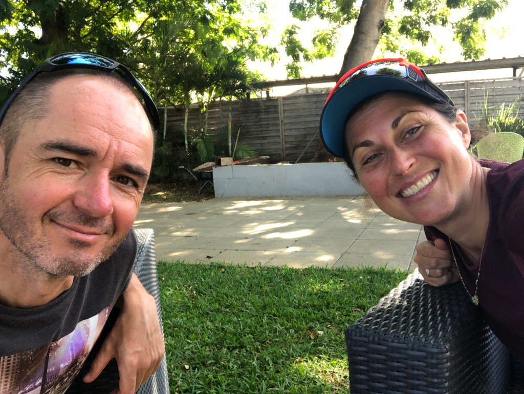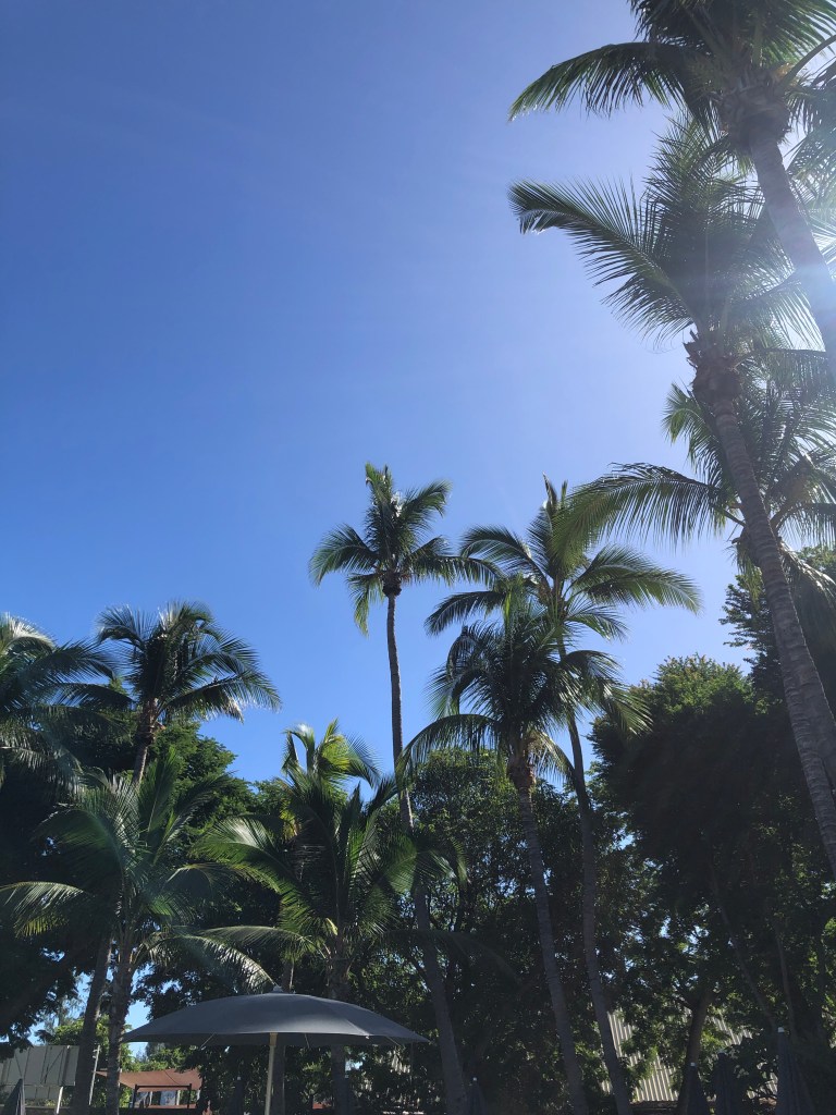 On se trouve un spot tranquille à l’hôtel, pas du tout exploité. Et on profite des palmiers, du soleil et du silence.