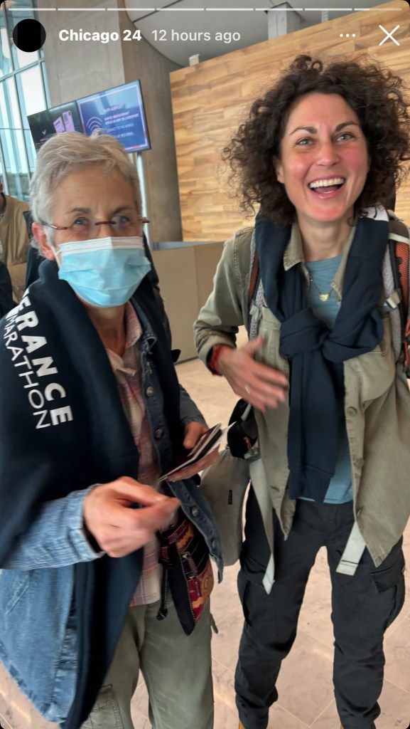 Au bout de quelques minutes, je réceptionne maman à bout de souffle mais nous serons bien dans le vol de 13h10 pour Chicago !