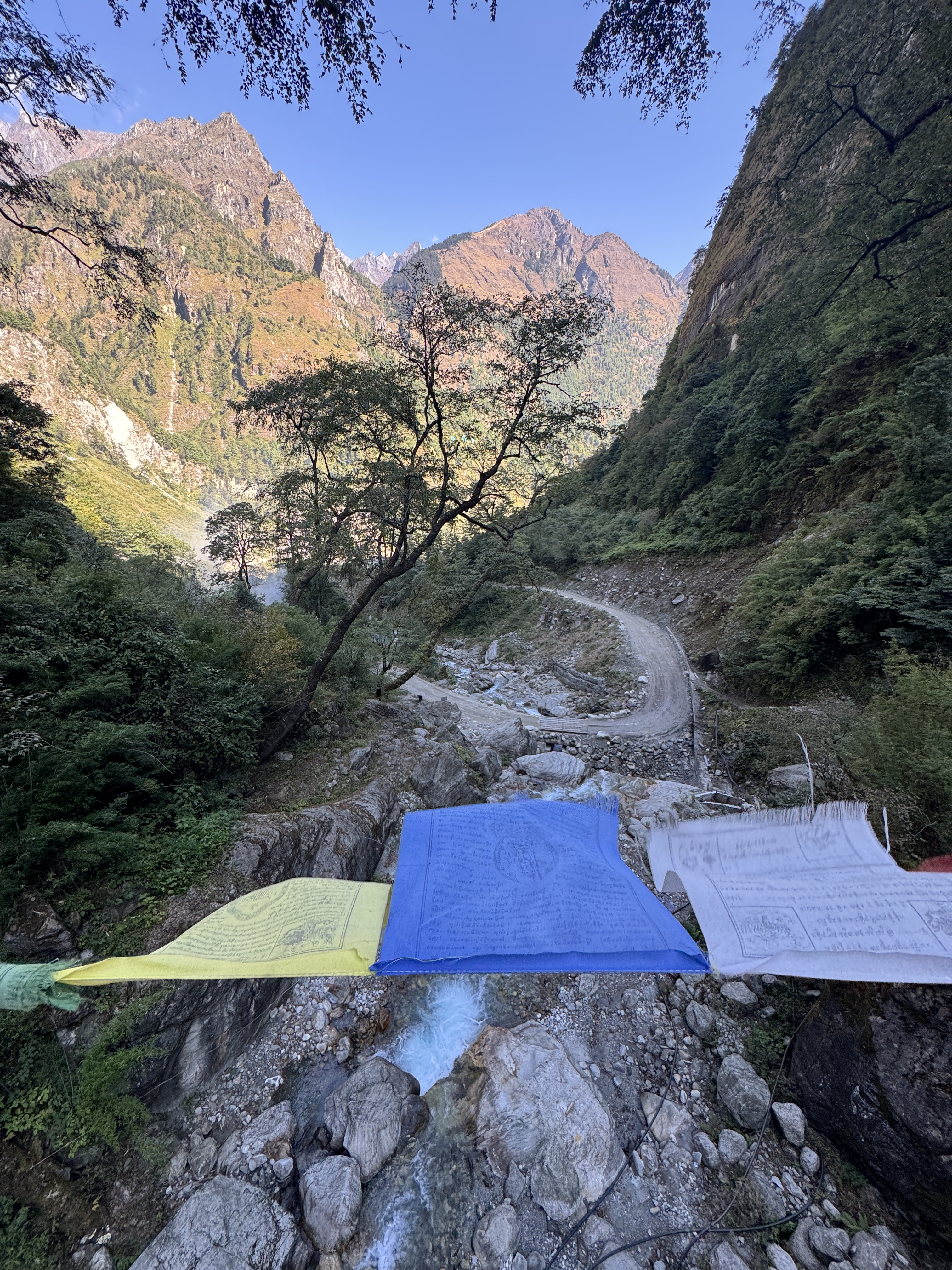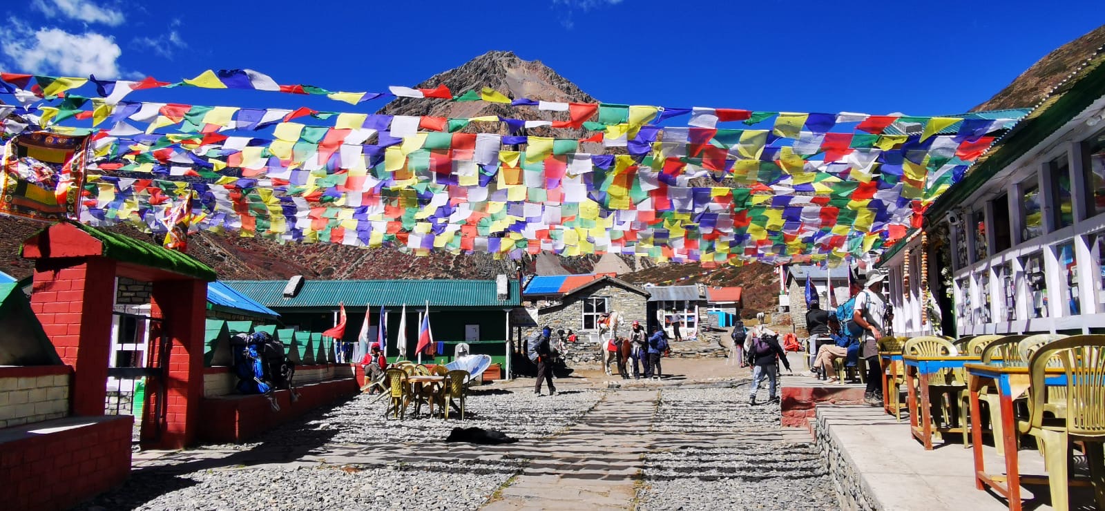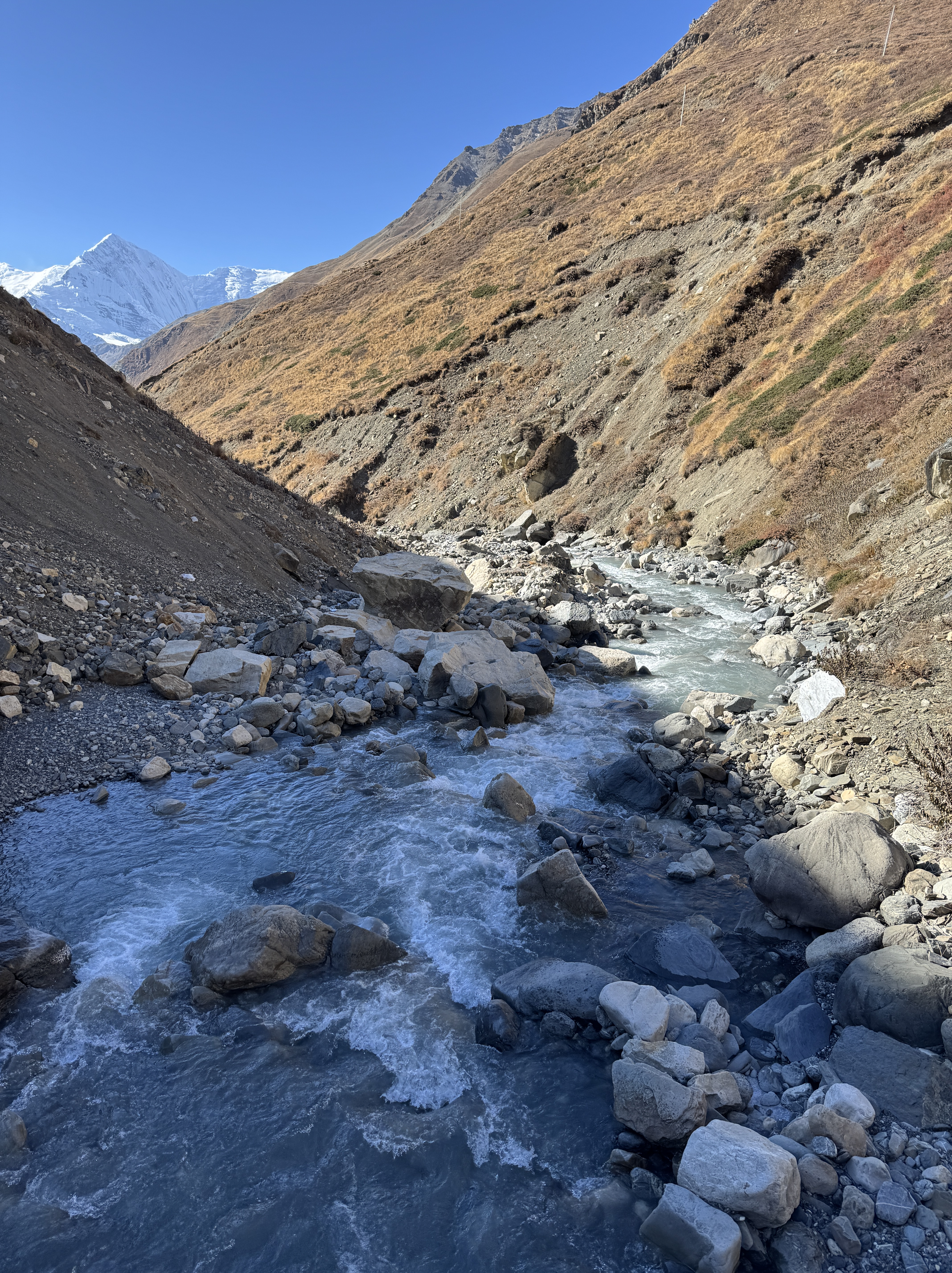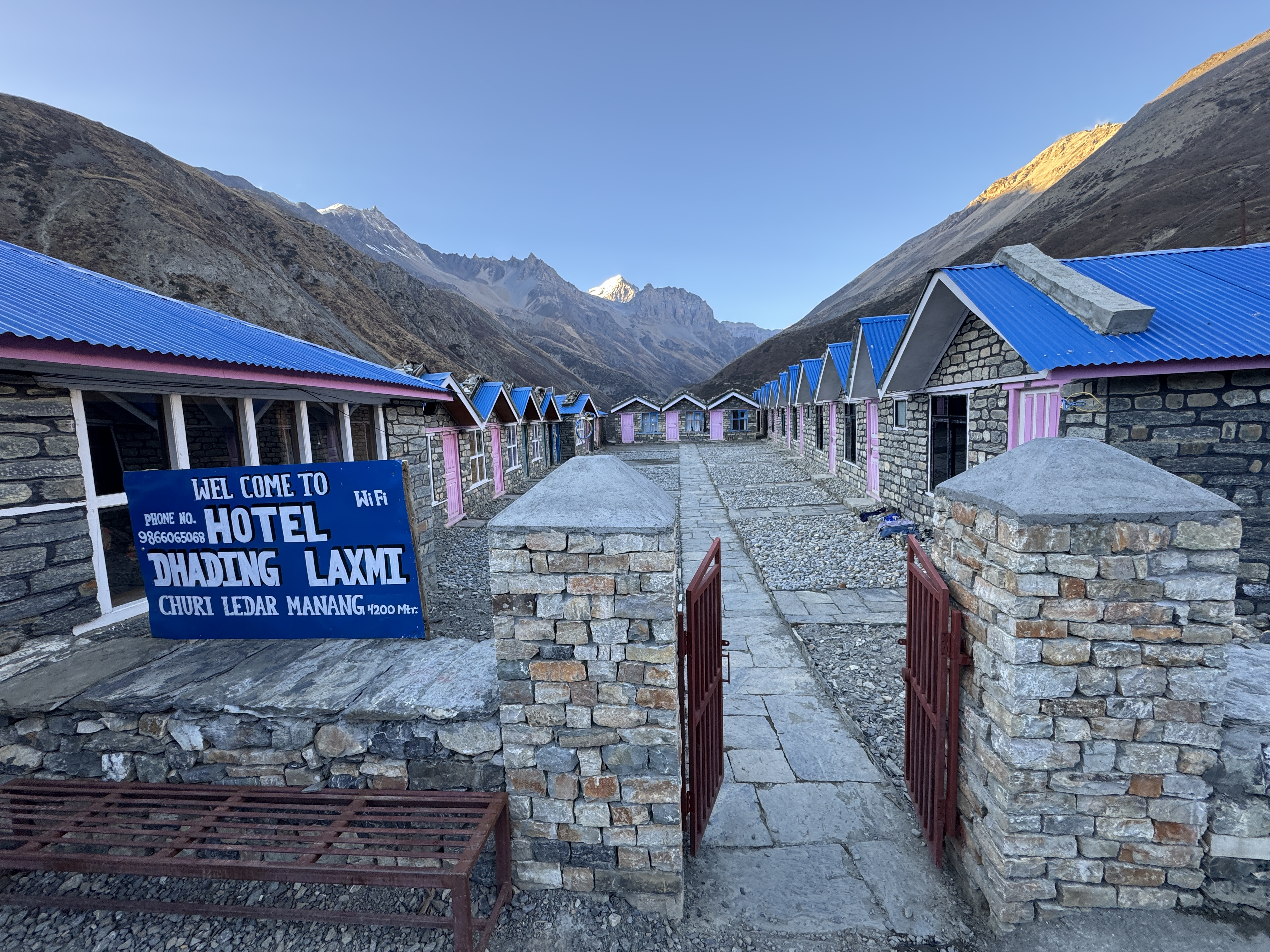 On fait une pause à Dihkur Pokhari à 3 150m pour la recharge en eau. Un village aux mille couleurs au milieu des montagnes asséchées. Dire qu’il y a quelques semaines, c’était la mousson.