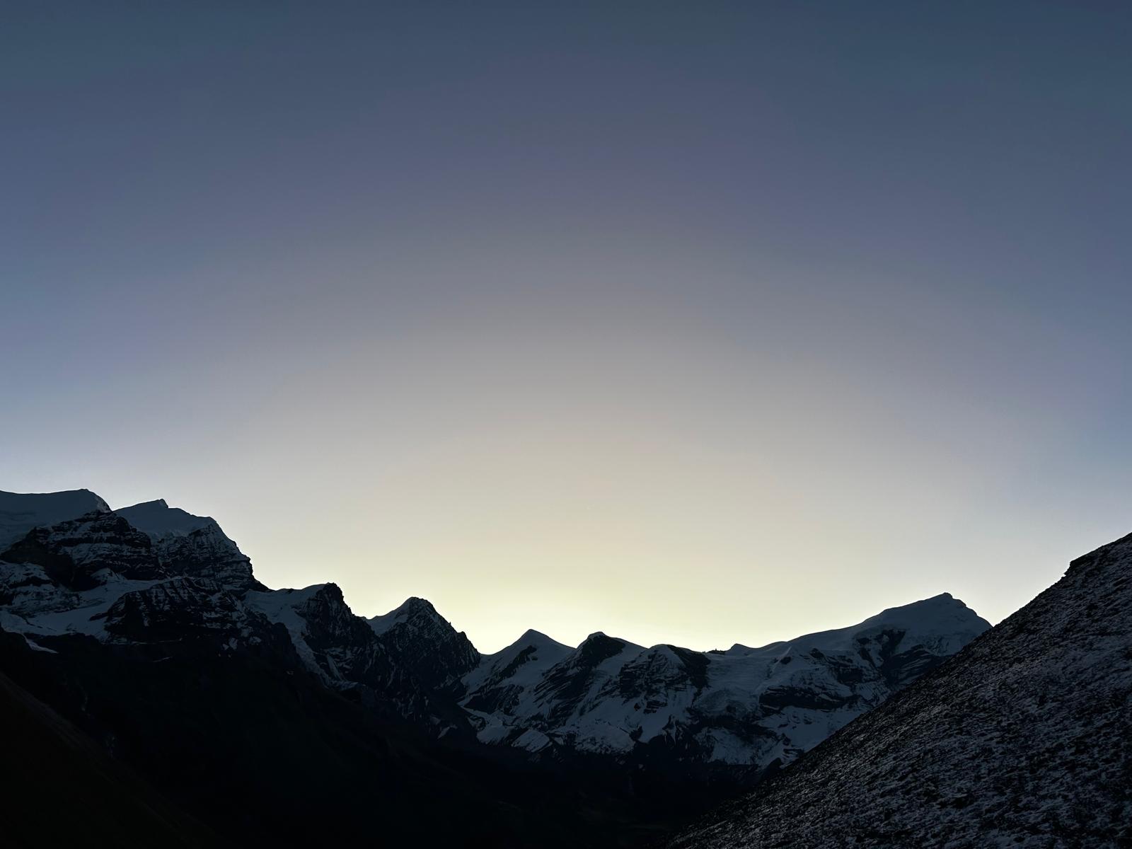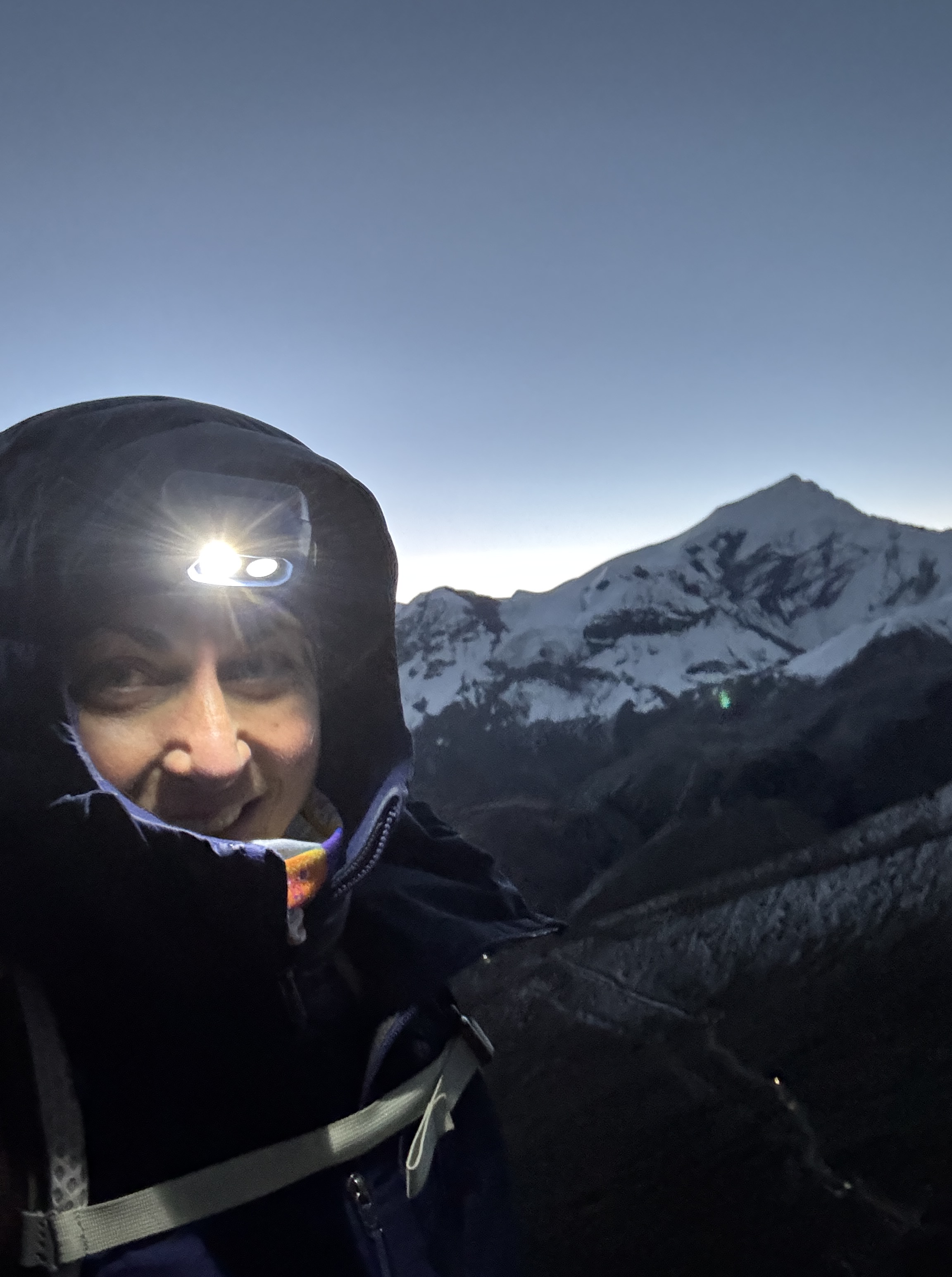À 5h20, comme prévu, nous commençons notre ascension. À la frontale. Dilli m’a donné son accord pour que je monte à mon rythme, dès lors que je marque des pauses régulières pour regroupement avec lui et Isabelle. J’achète !