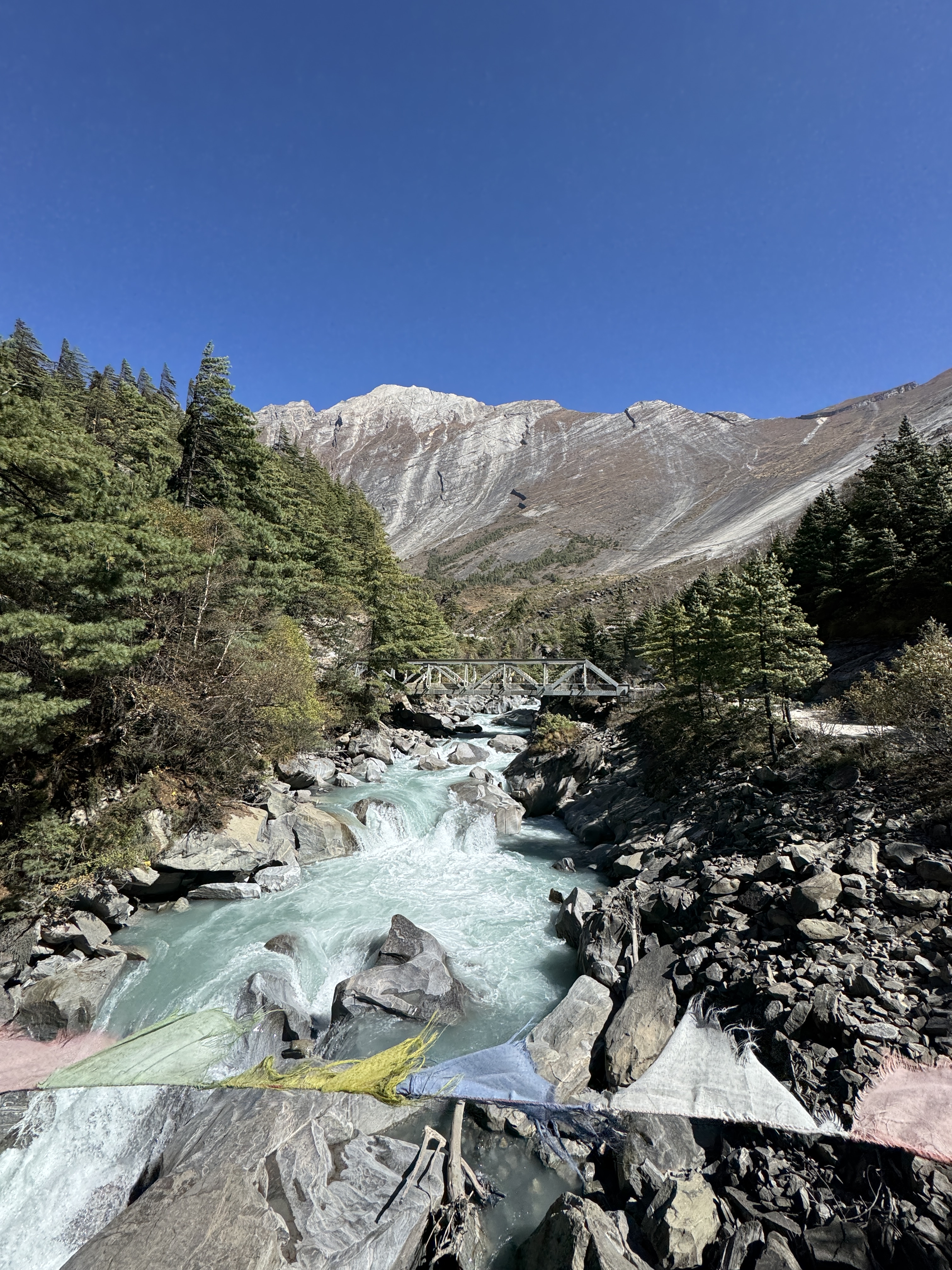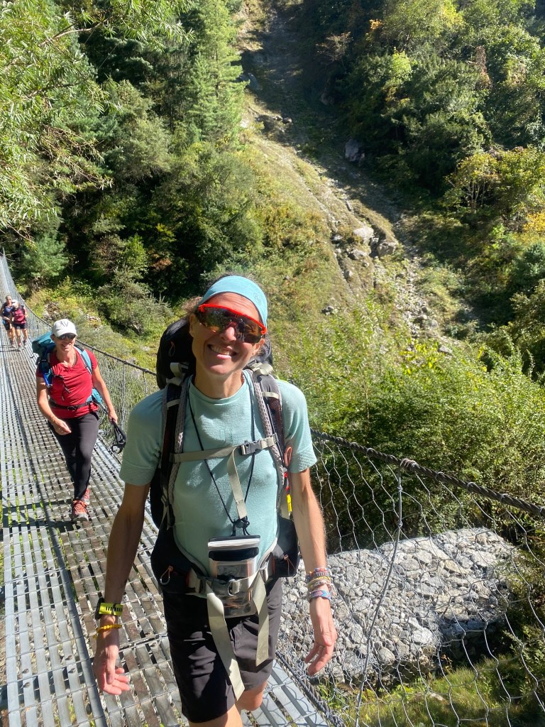 On traverse une autre passerelle, d’autres villages. Toujours des enfants pour nous dire Namaste avec un grand sourire et en joignant les mains.