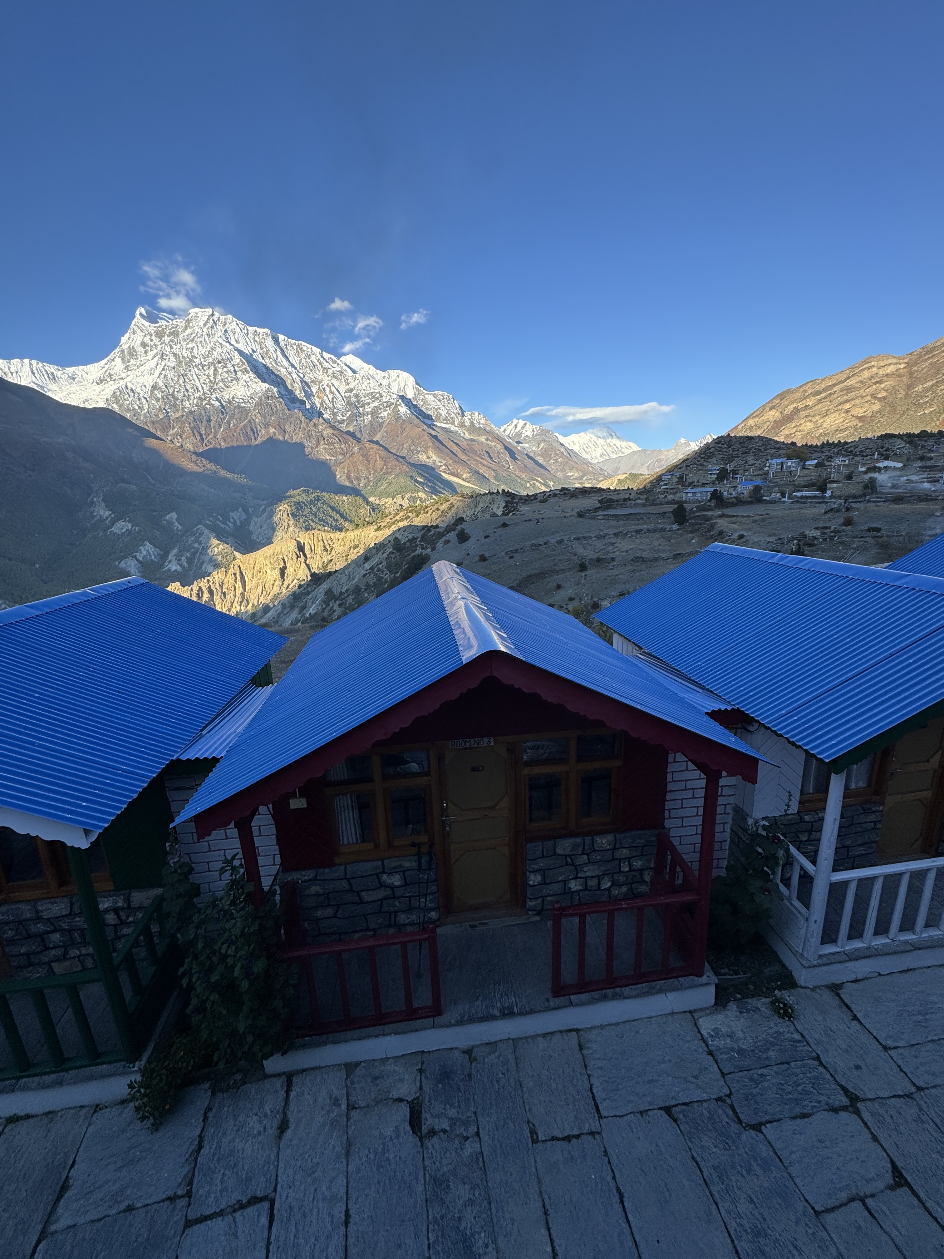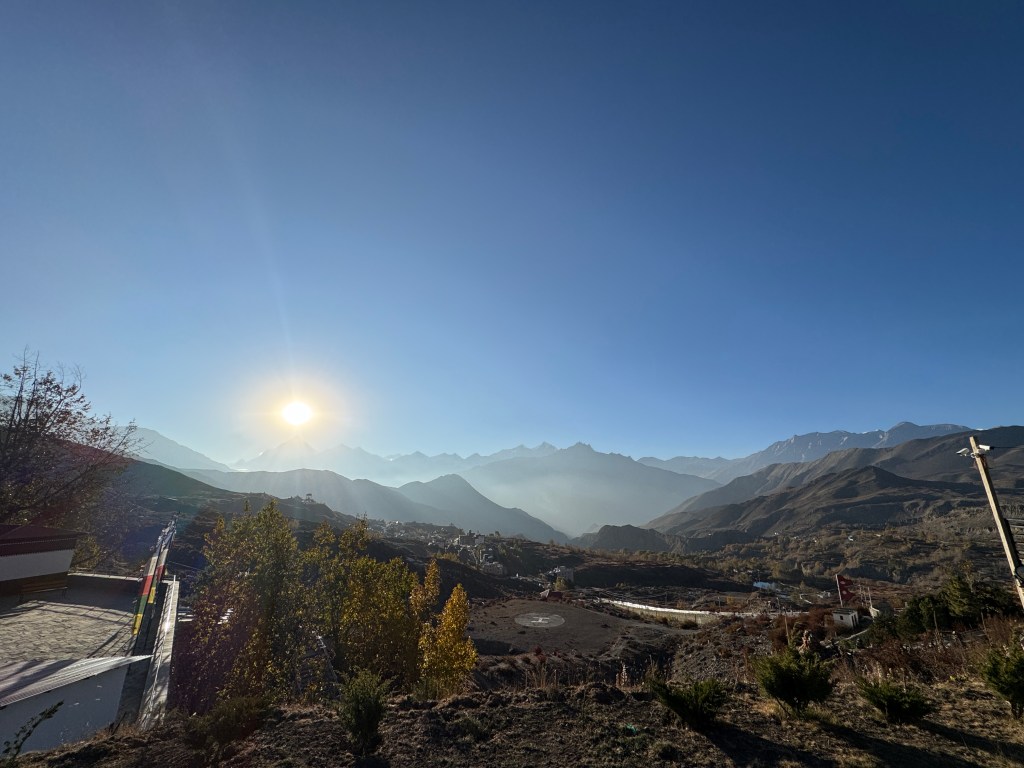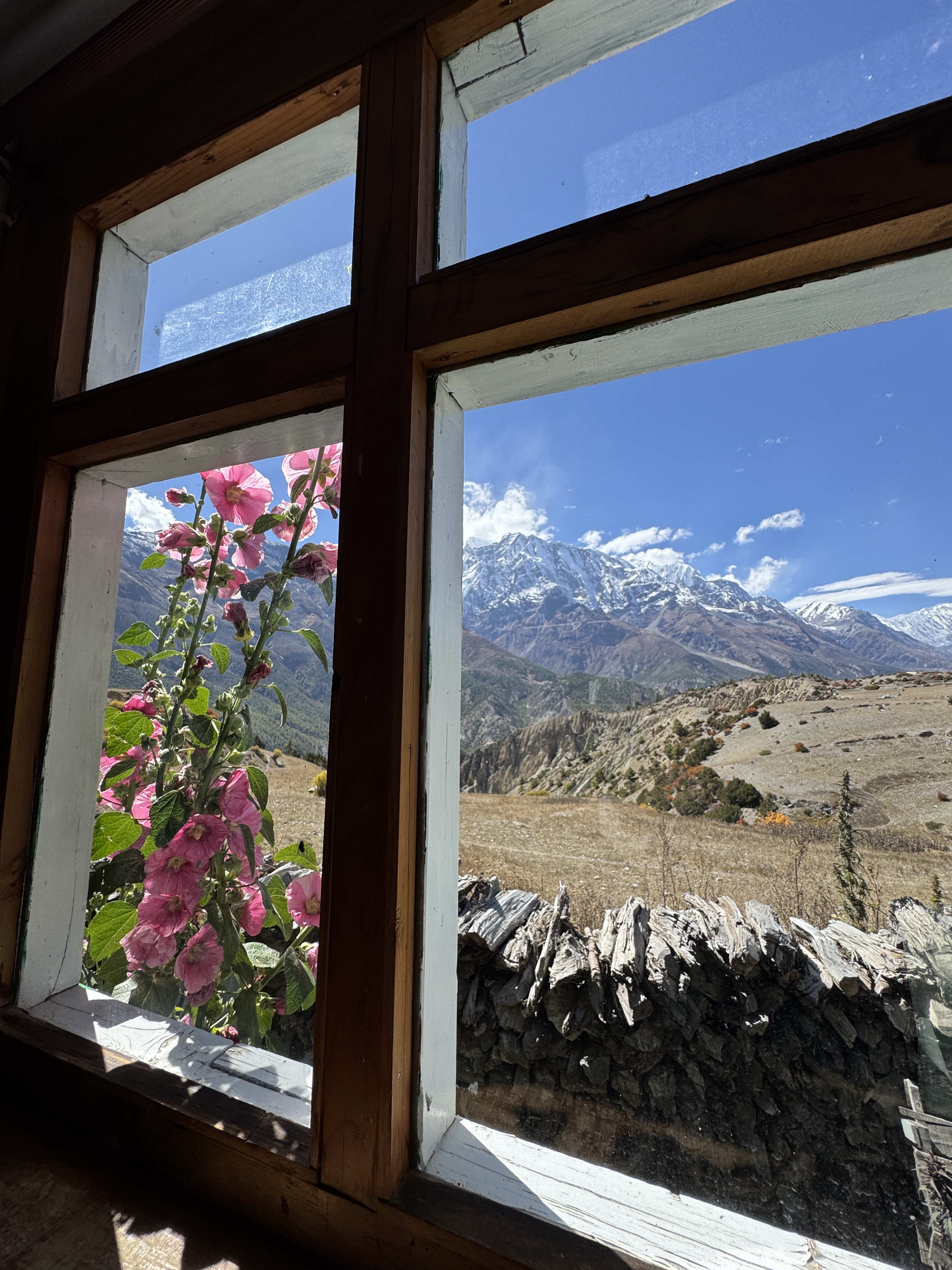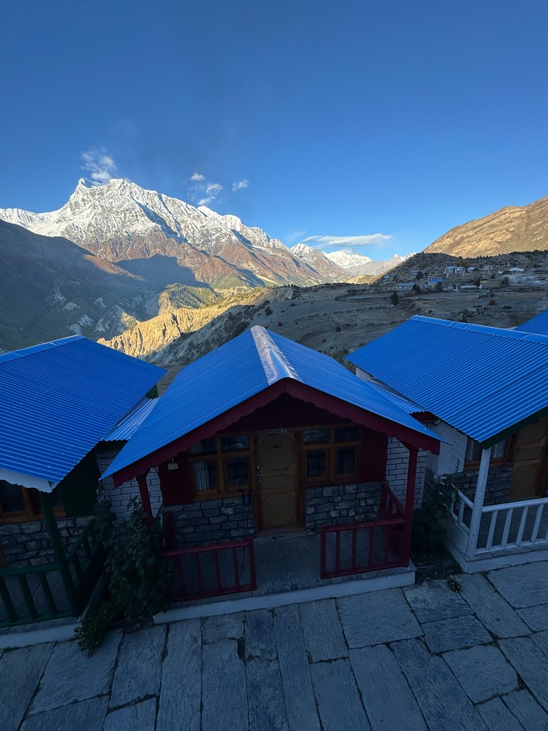 Et quand je pousse la porte de la chambre, que je vois à ma droite Annapurna 2 (7937 m) et à ma gauche, le Lamjung (6950) bercés par un ciel bleu et un soleil éclatant, je me rappelle pourquoi je suis là.