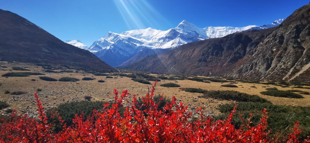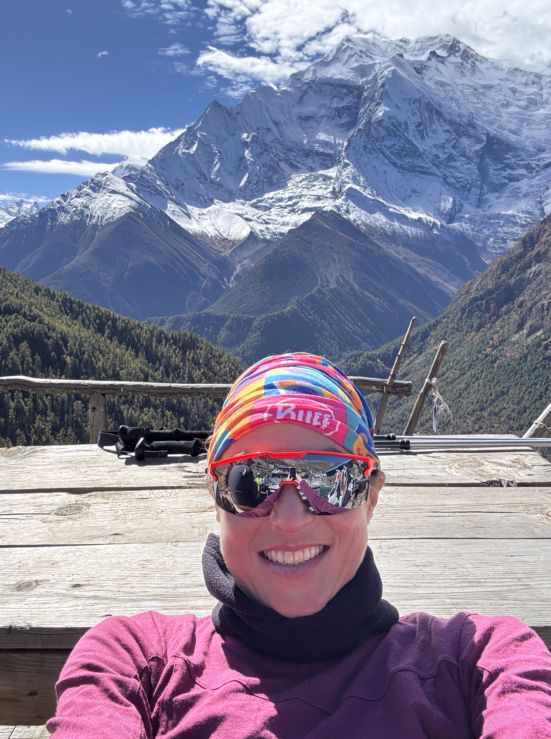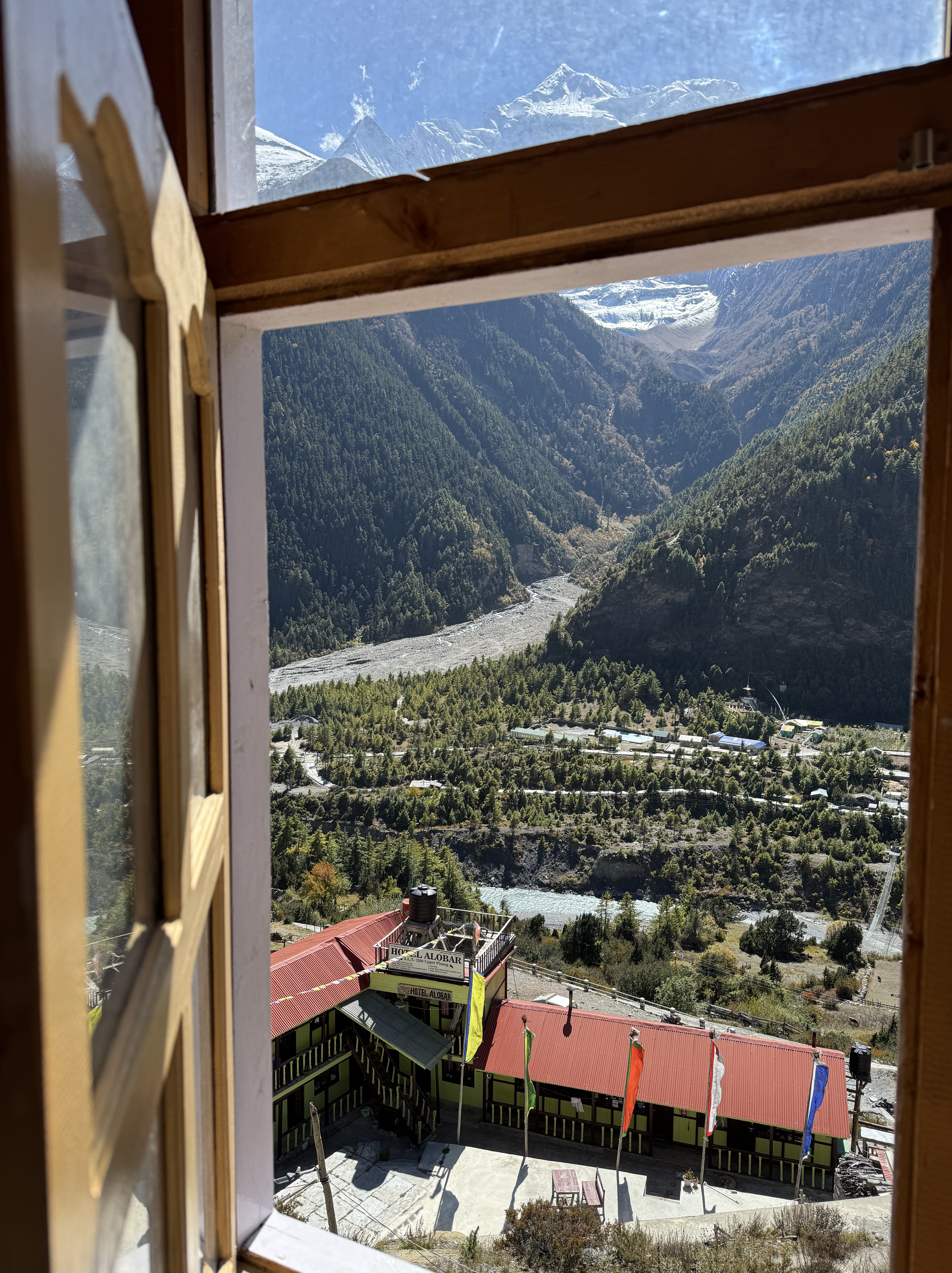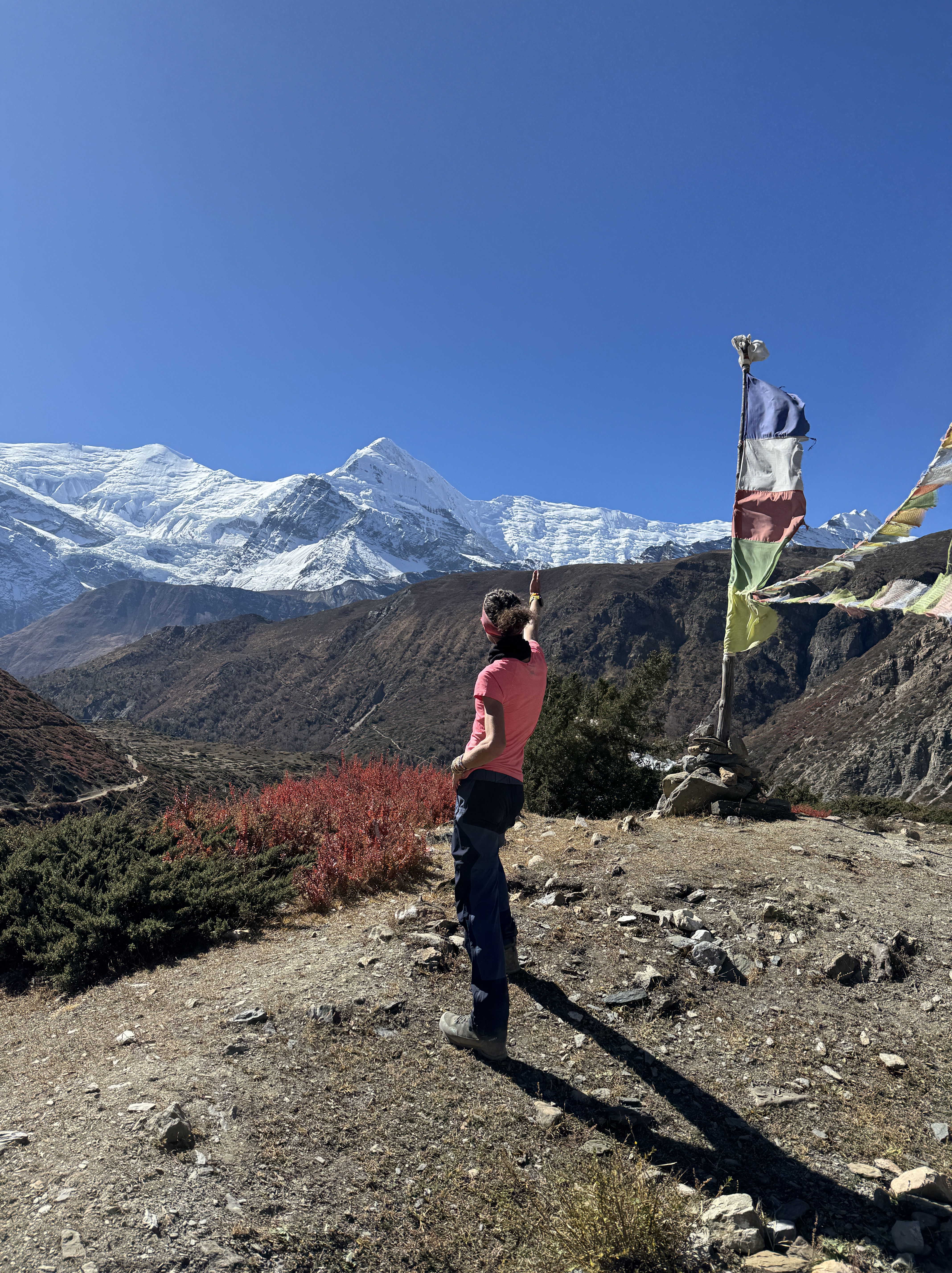 Et quand je pousse la porte de la chambre, que je vois à ma droite Annapurna 2 (7937 m) et à ma gauche, le Lamjung (6950) bercés par un ciel bleu et un soleil éclatant, je me rappelle pourquoi je suis là.
