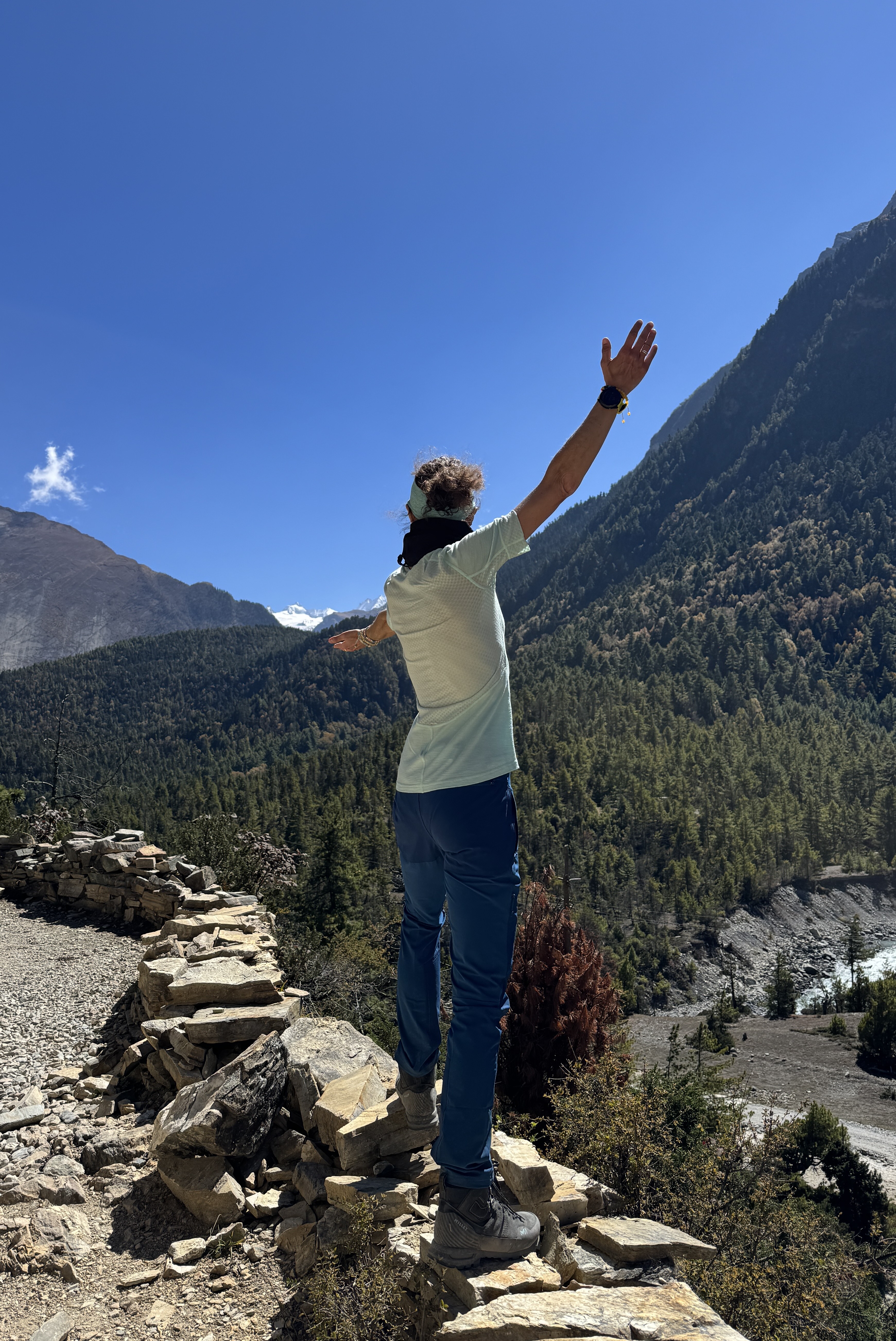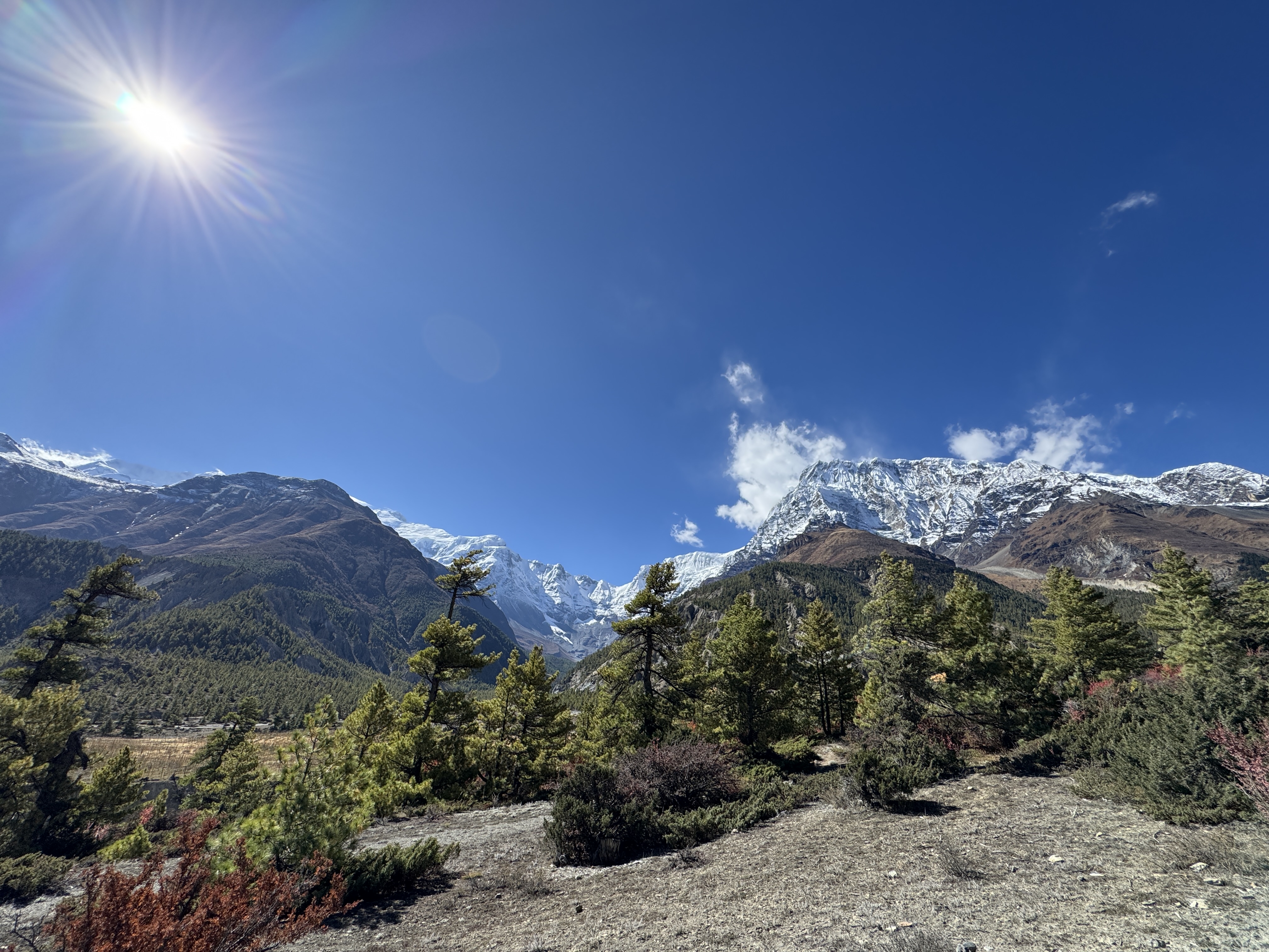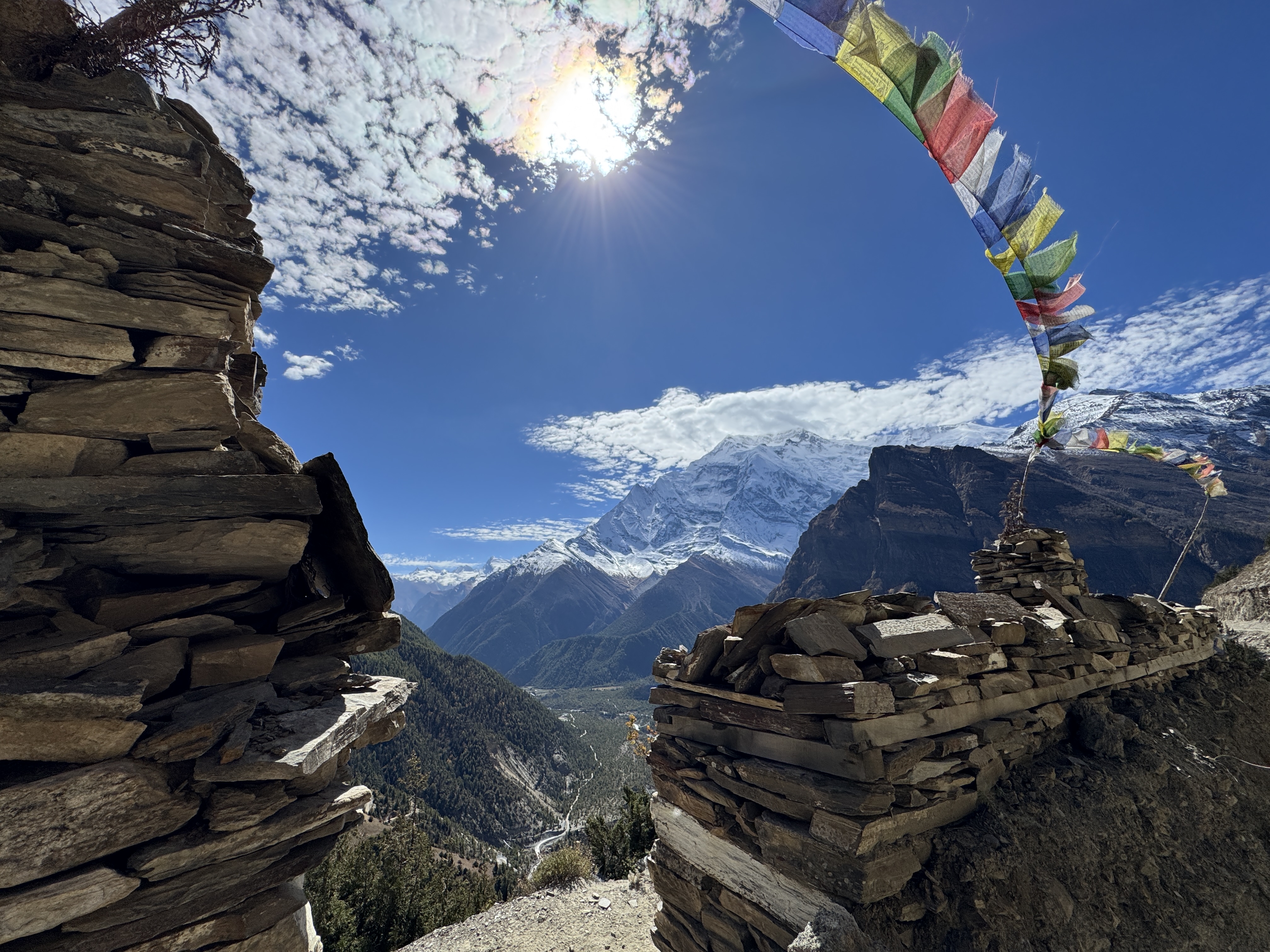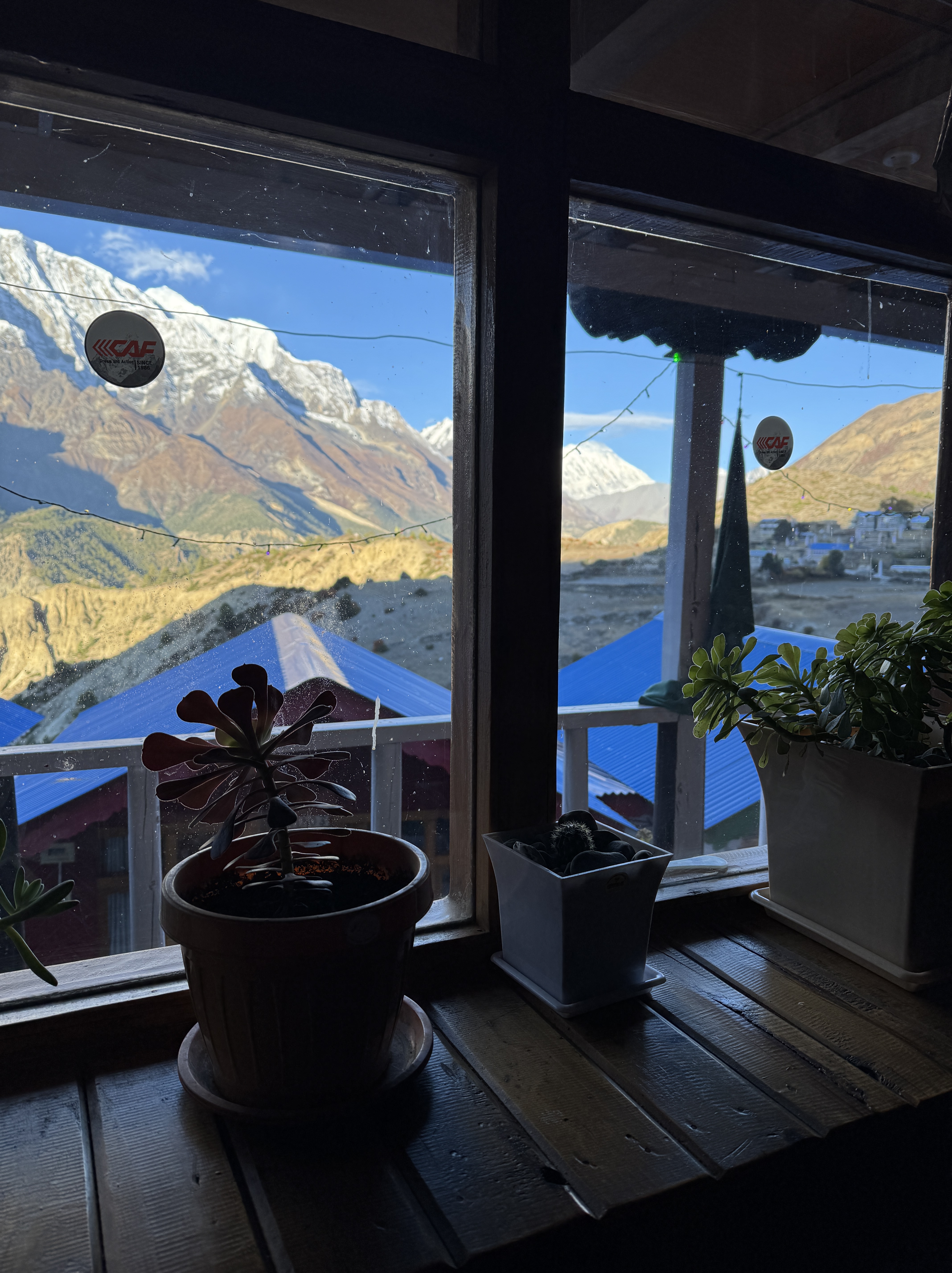Et quand je pousse la porte de la chambre, que je vois à ma droite Annapurna 2 (7937 m) et à ma gauche, le Lamjung (6950) bercés par un ciel bleu et un soleil éclatant, je me rappelle pourquoi je suis là.