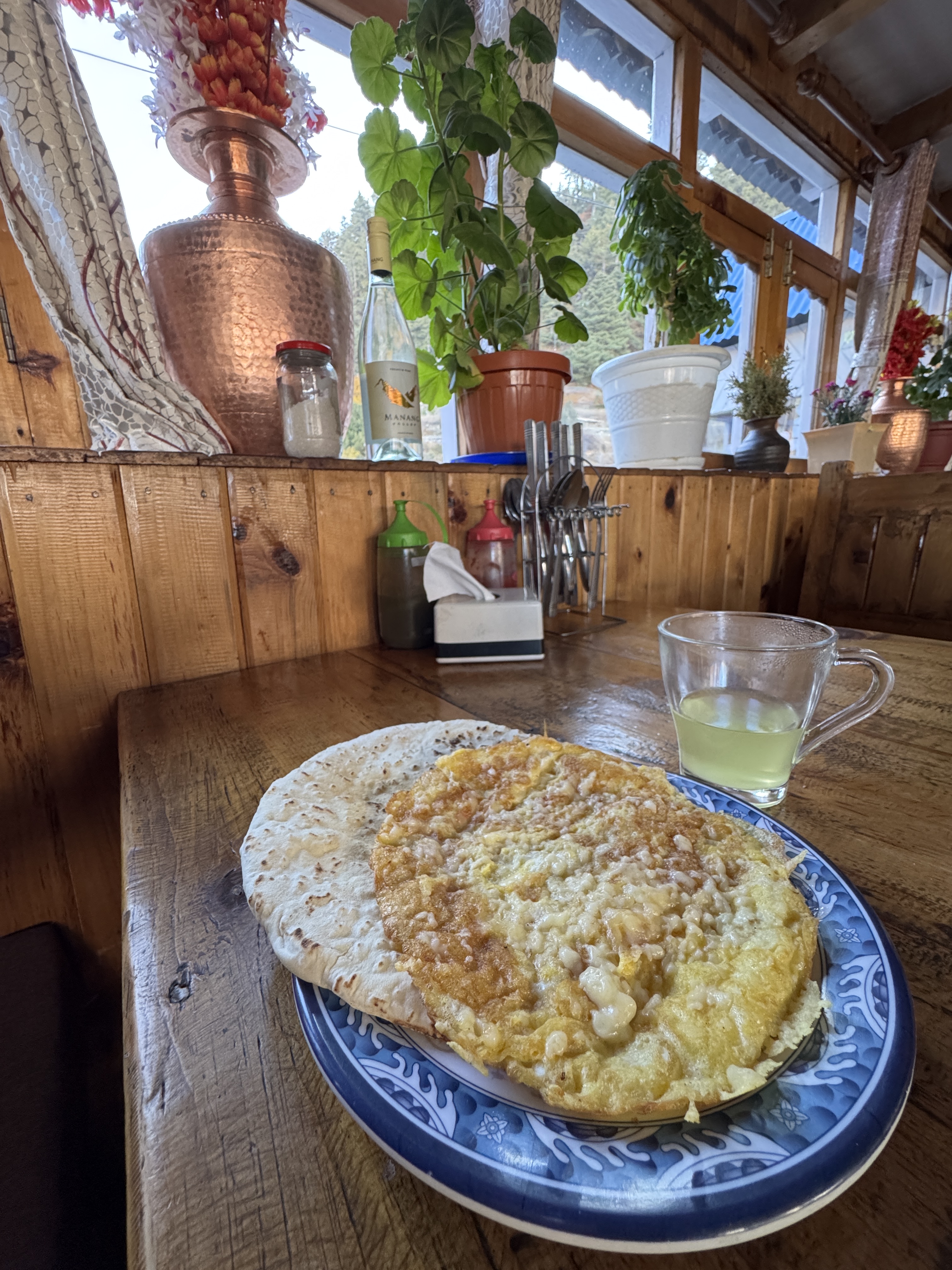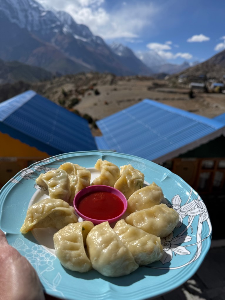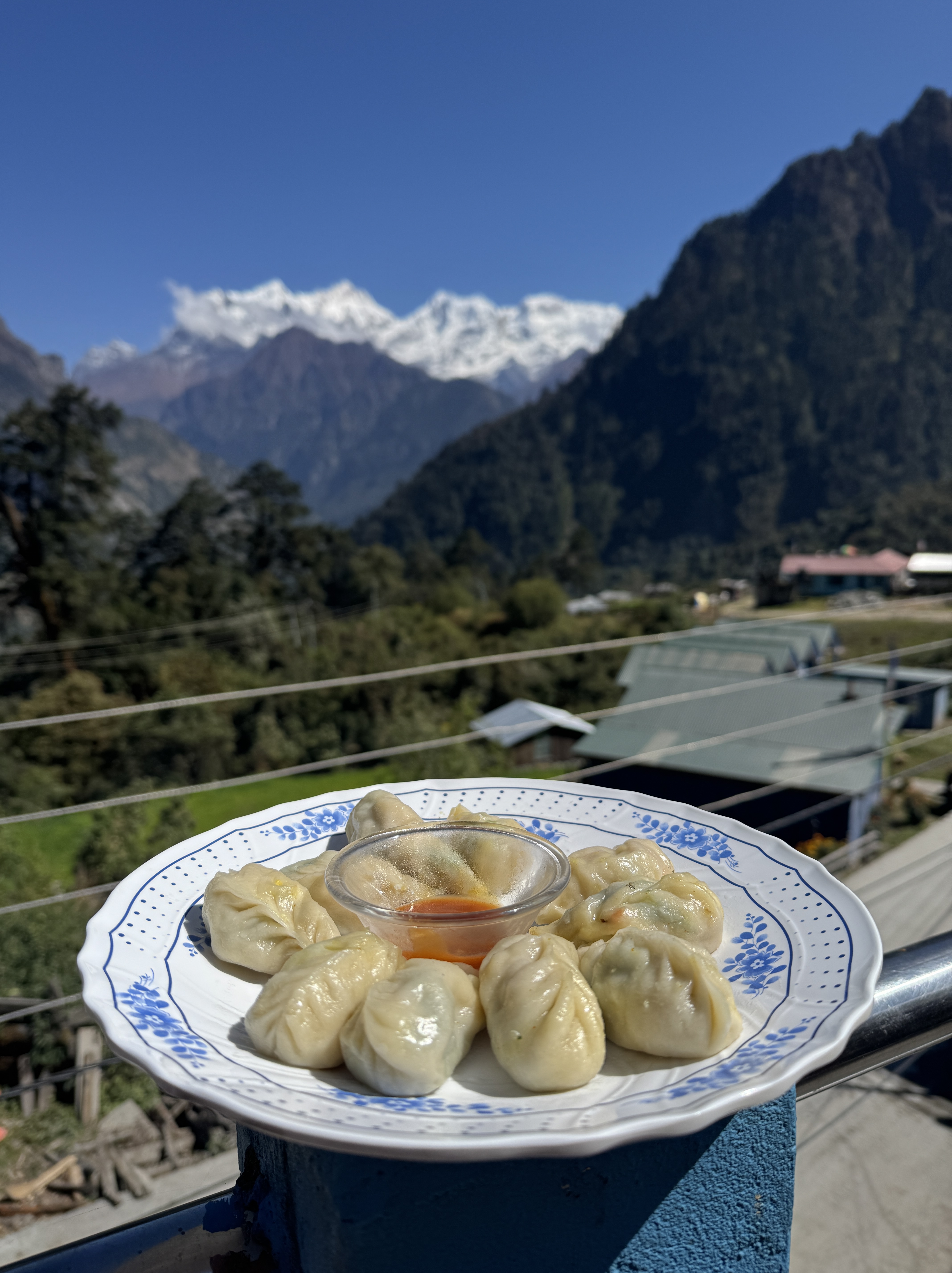 Alors que je déguste mes mixed Momo (egg / veggie / cheese) sous un soleil resplendissant, face à ce sommet majestueux, je me dis que la vie est belle.