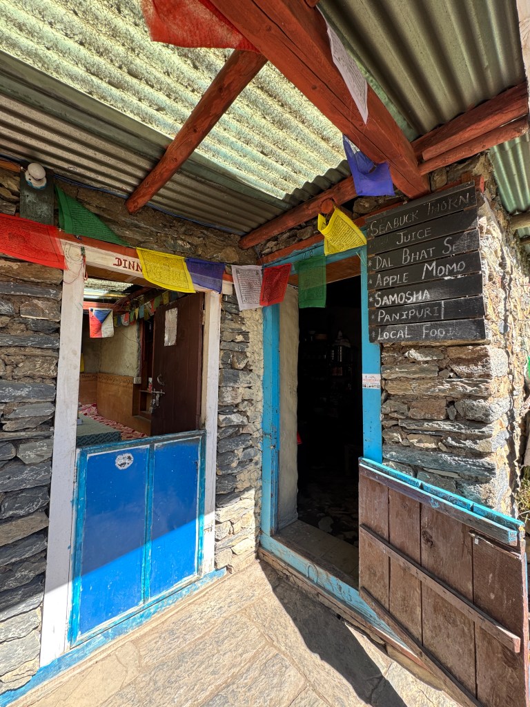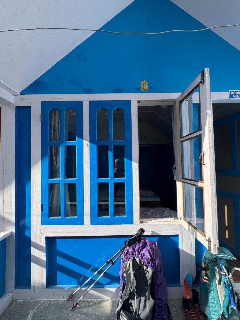 Je suis rapidement claquée et j’ai froid. La chambre se rapproche de la température d’un frigo. Et même pendant le repas, il fait toujours un peu frais car la porte reste souvent ouverte. À croire que nos amis népalais préfèrent le froid.