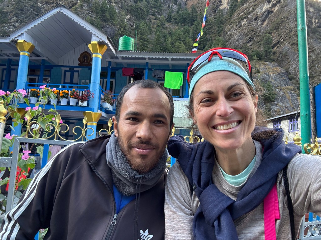 On déguste un délicieux hot lemon pour nous réchauffer un peu, brief pour la soirée et on va jeter un œil au village. Je prends aussi une photo avec mon porteur parce que bon, les gars sont des warriors !