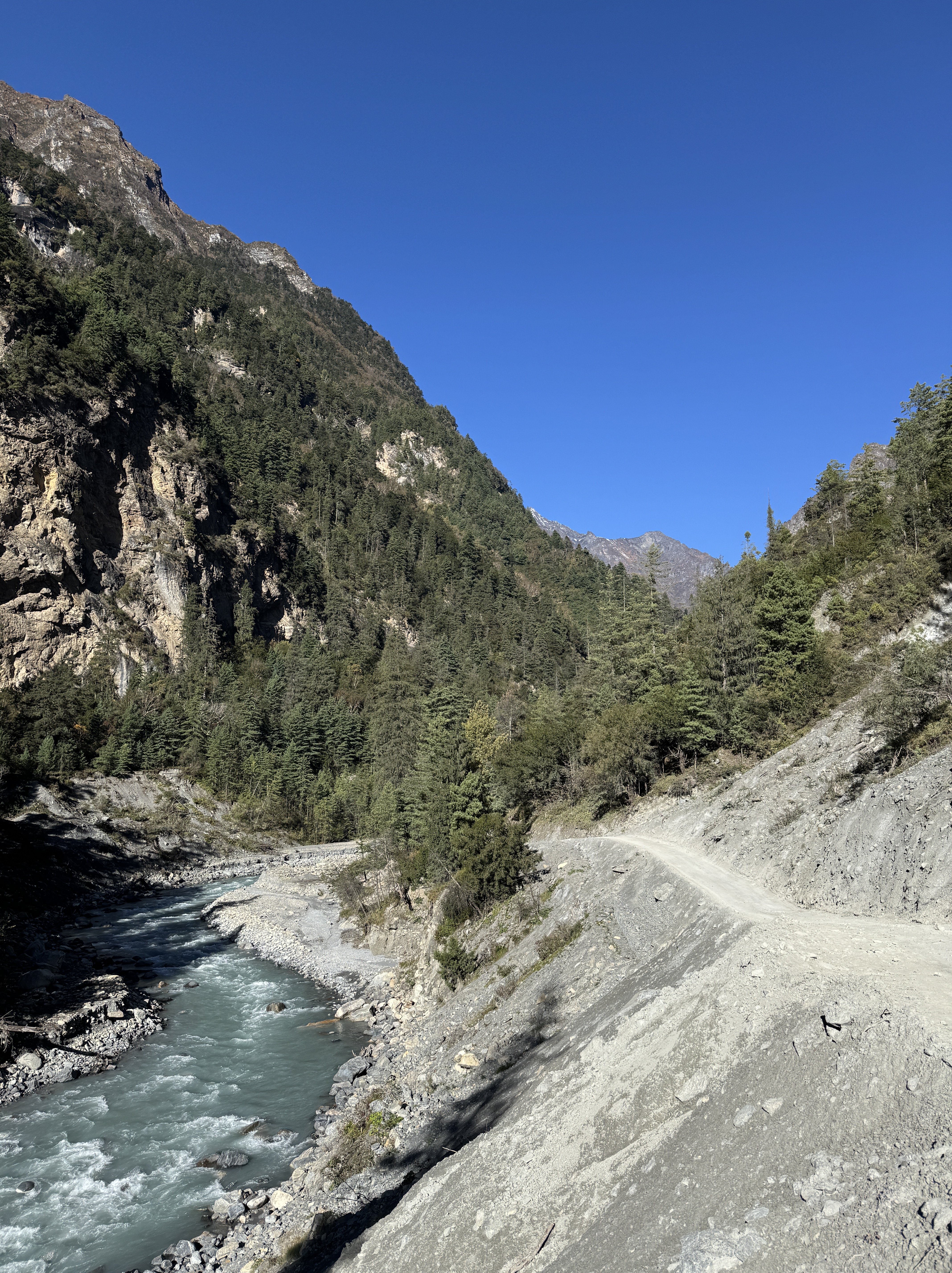 Vers 8h30, on se met en marche depuis Dharapani à 1 881m d’altitude et le changement de décor est fort agréable !