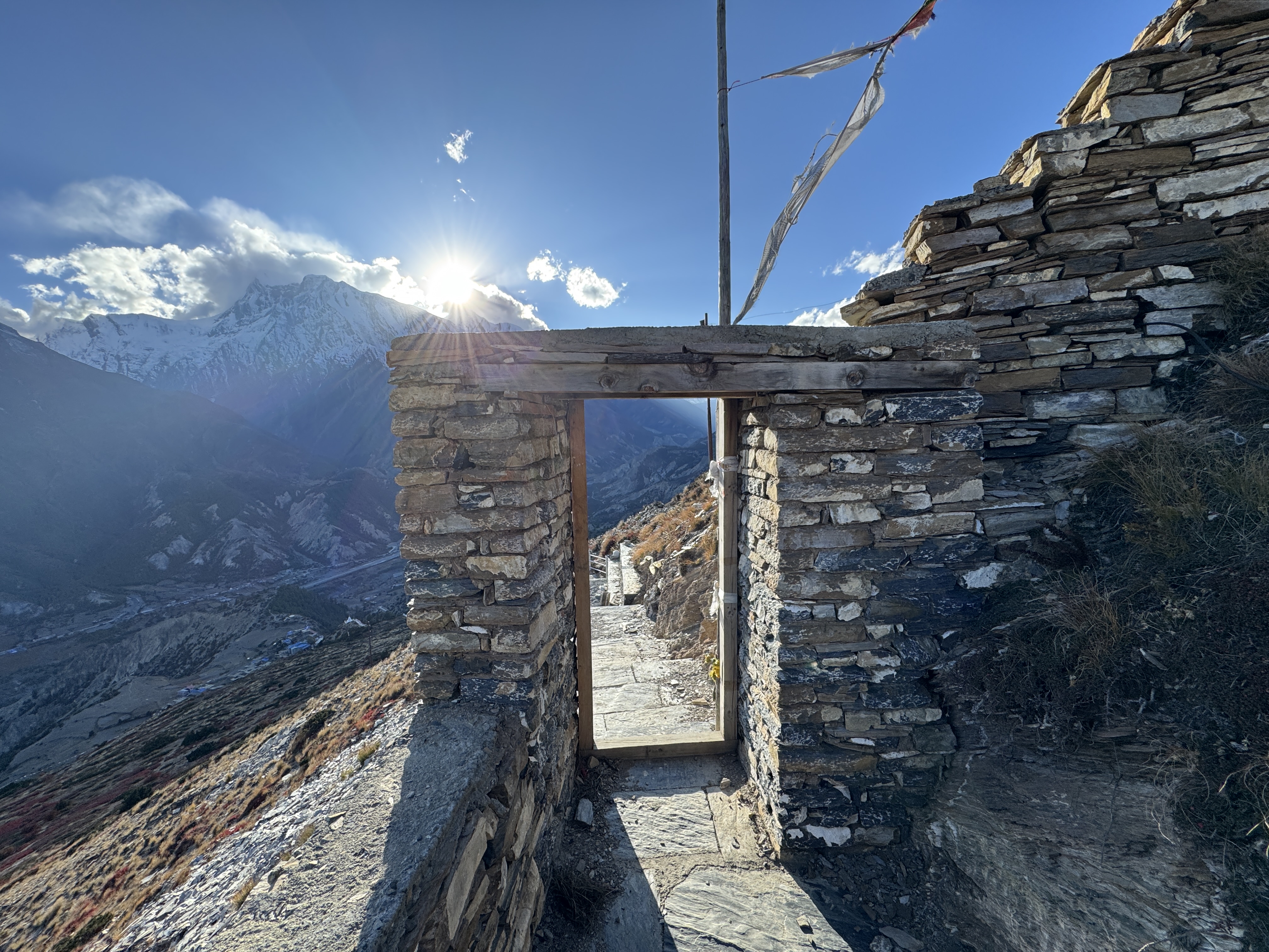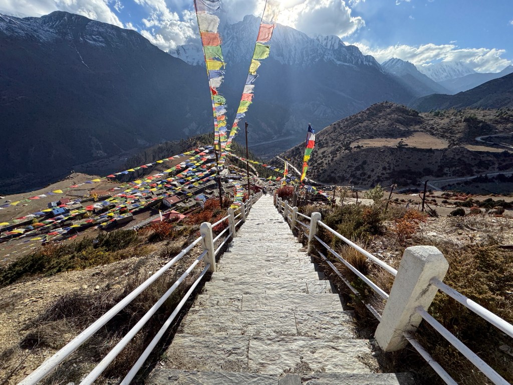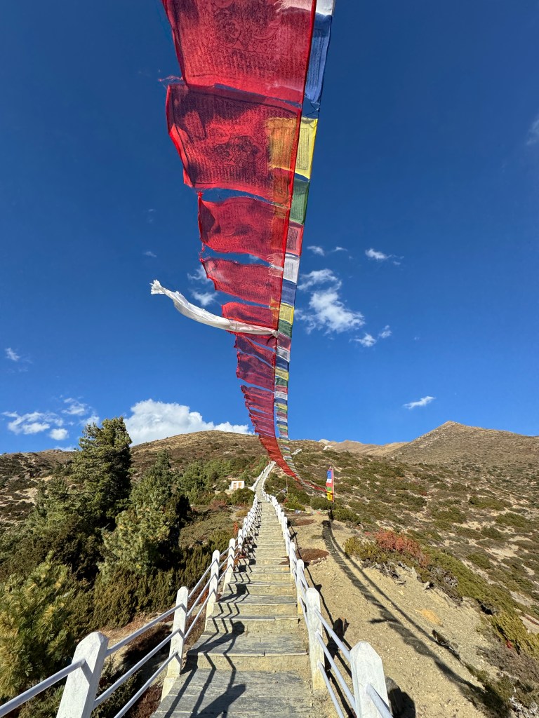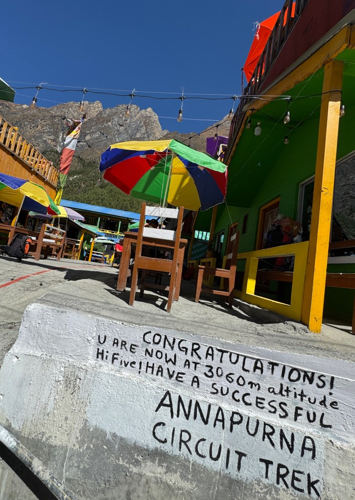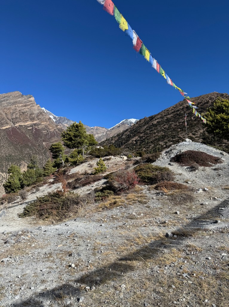 En cette veille de Pass, on part pour une dernière (micro) balade d’acclimatation vers le Thorong High Camp View Point avec une vue imprenable sur les Annapurna.