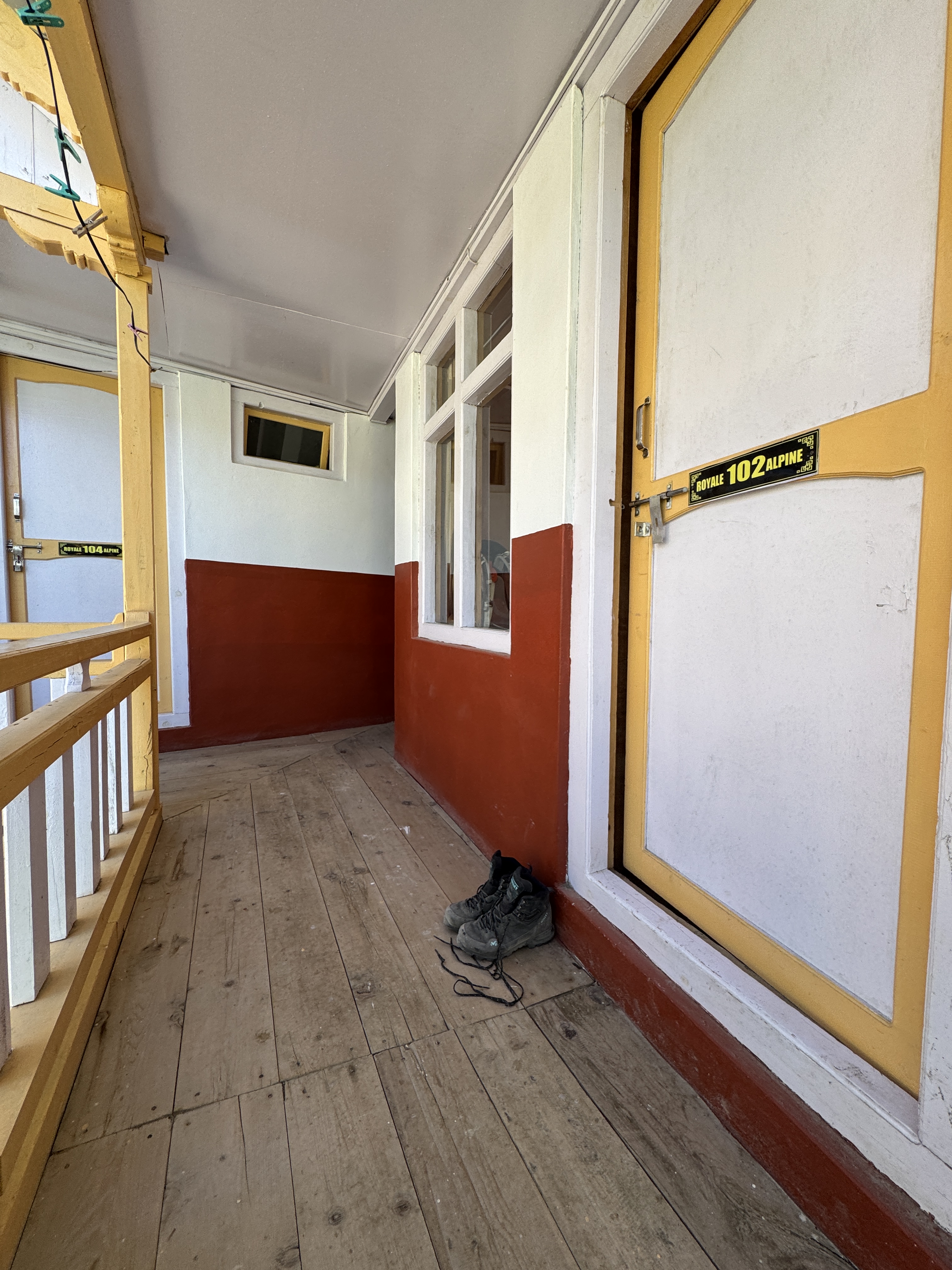 Il est un peu plus de 12h30 quand nous prenons possession de nos chambres à l’hôtel Royal Alpine, la numéro 102 précisément, que je partage avec Isabelle et Corinne. C’est sommaire mais la vue est incroyable.