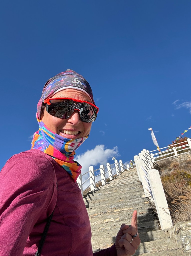 C’est seulement au sommet que Dilli nous révélera que nous avons grimpé 1 730 marches ! Nous sommes alors à 4 020m et avons avalé 350 D+ en moins de 3km !
