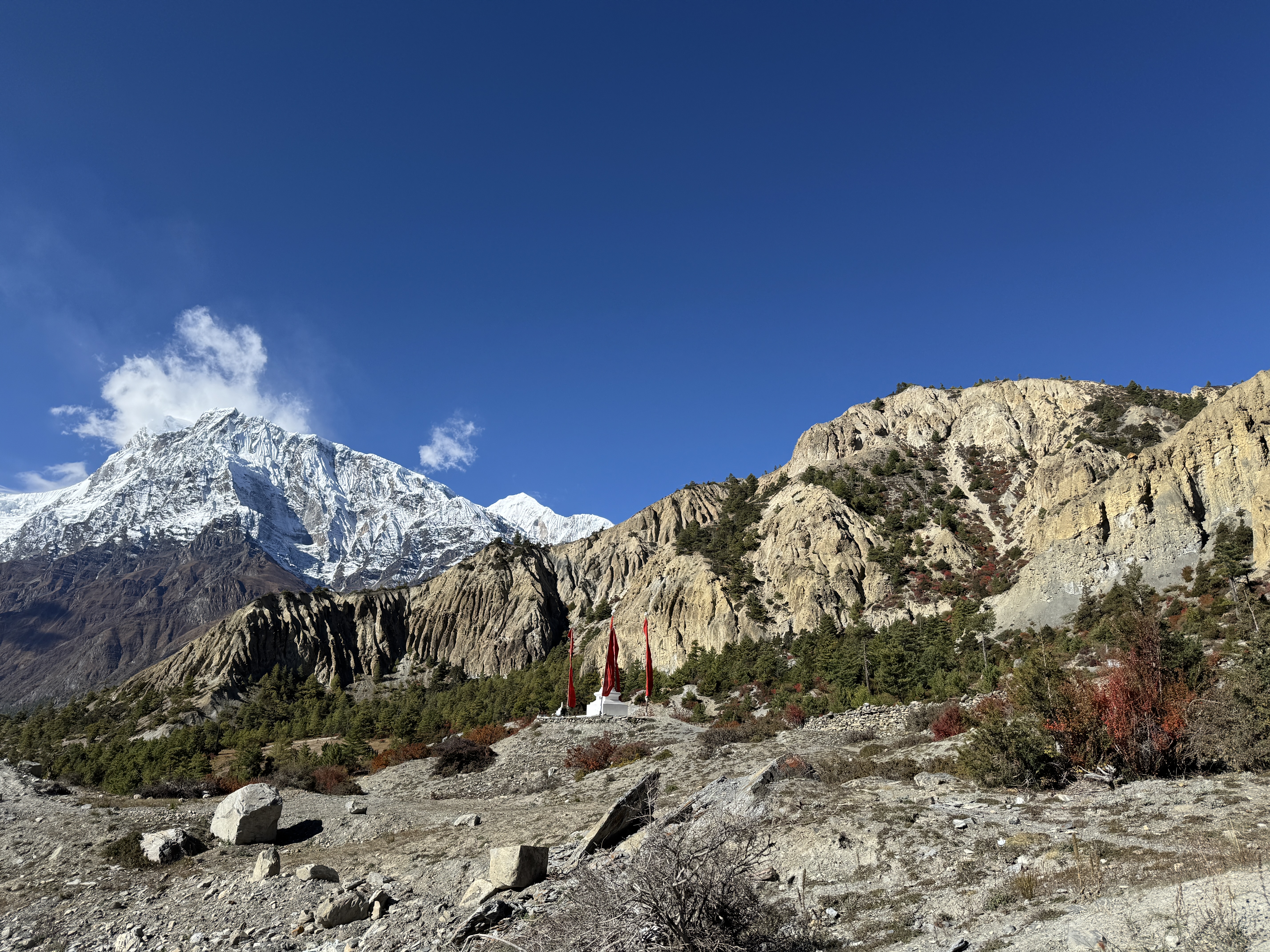 D’ailleurs, Florian trouve qu’il y a moins de monde que l’an passé et Dilli confirme en nous disant que trois de ses treks ont été annulés, probablement en raison des événements de septembre. Tant mieux pour nous, moins sympa pour les Népalais.