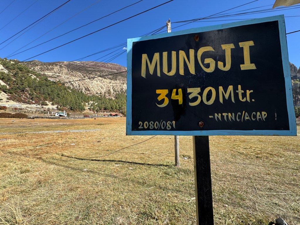 Retour à nos moutons ou, devrais-je dire, à nos petons ! Le kilométrage continue de tourner. On aura accompli quasi 15km quand on rejoint notre destination finale du jour, Upper Pisang, à 3 300 m d’altitude.