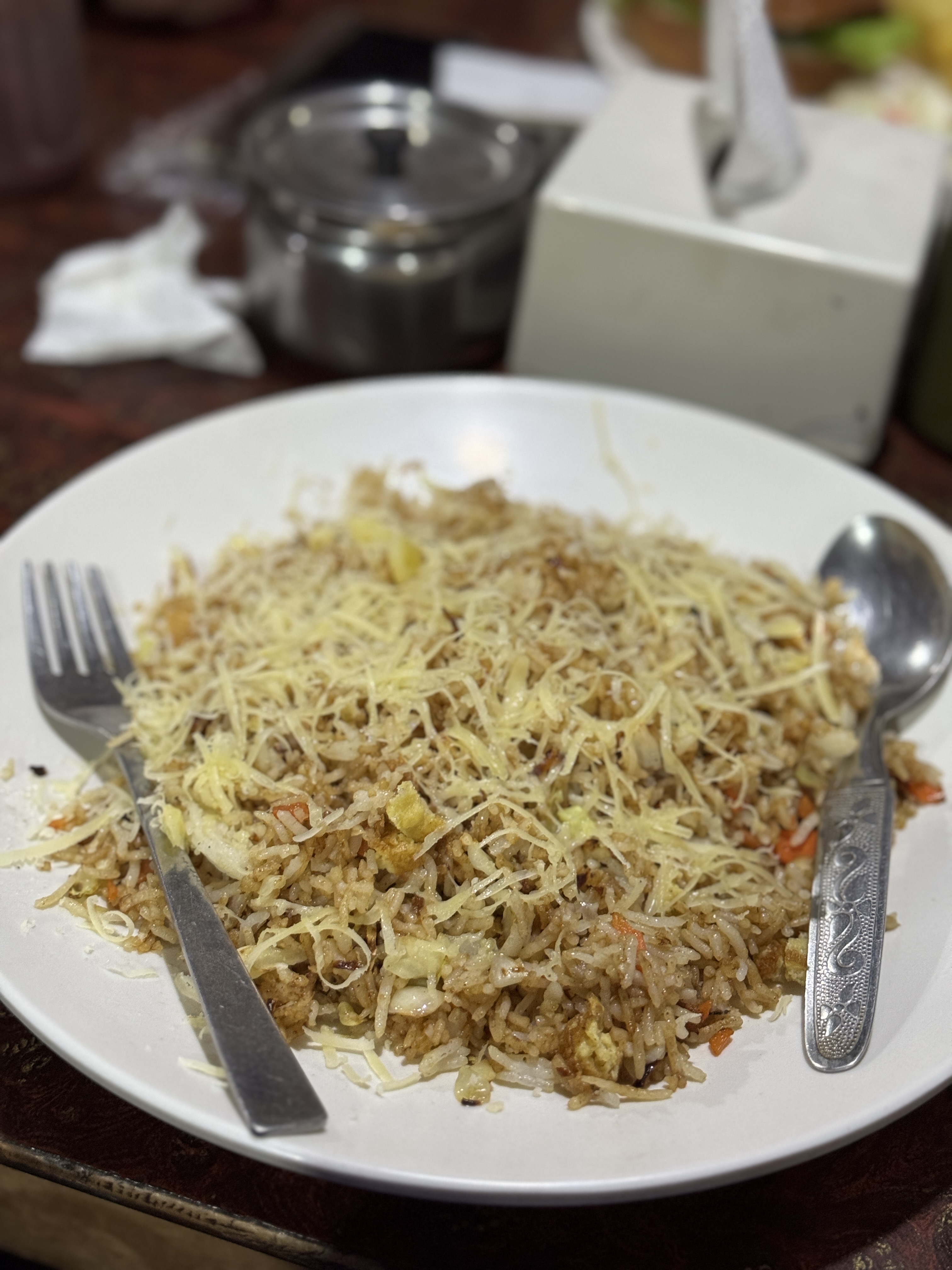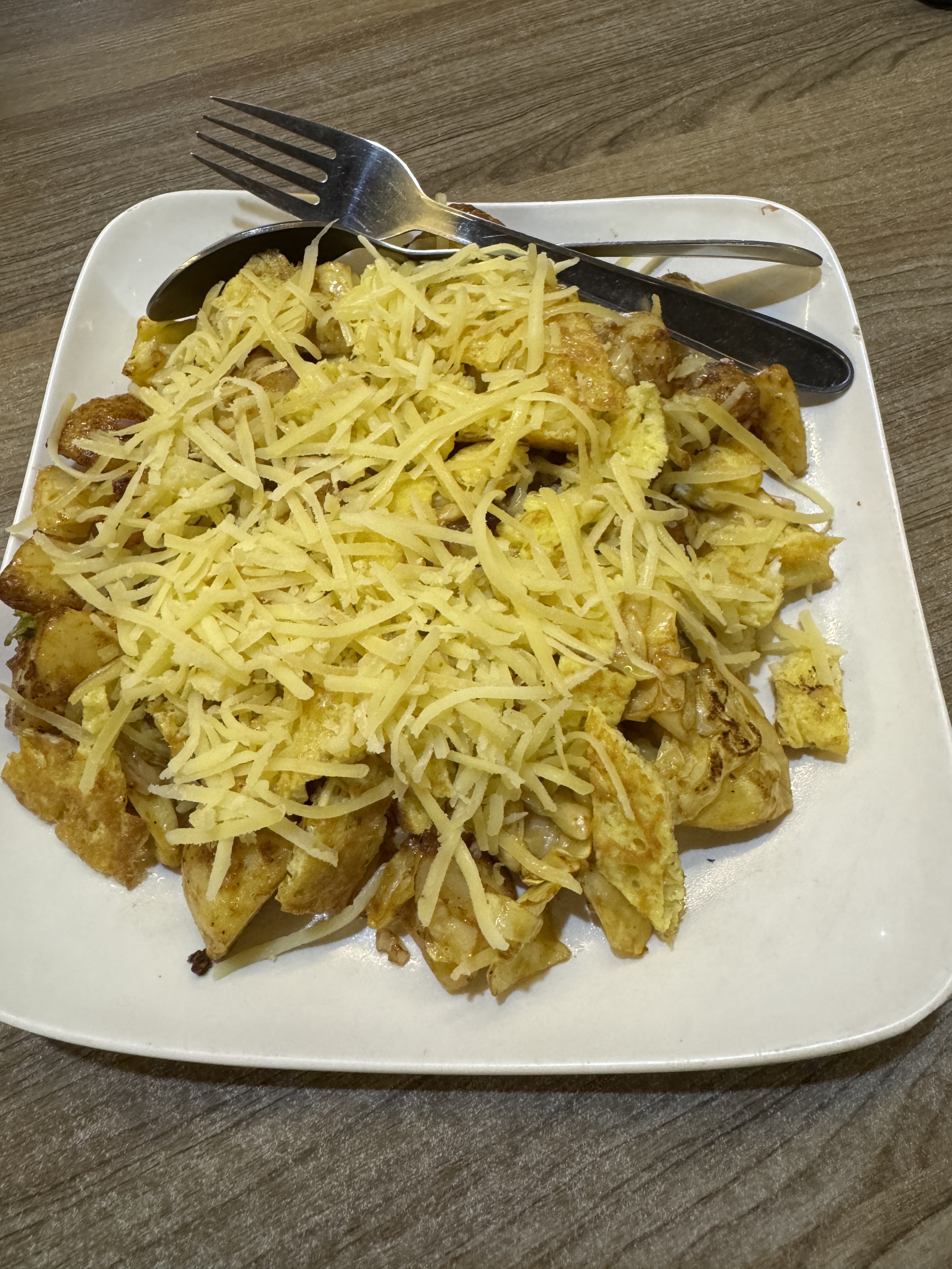 Puis vient l’assiette de veg egg fried potatoes with cheese, une tuerie !