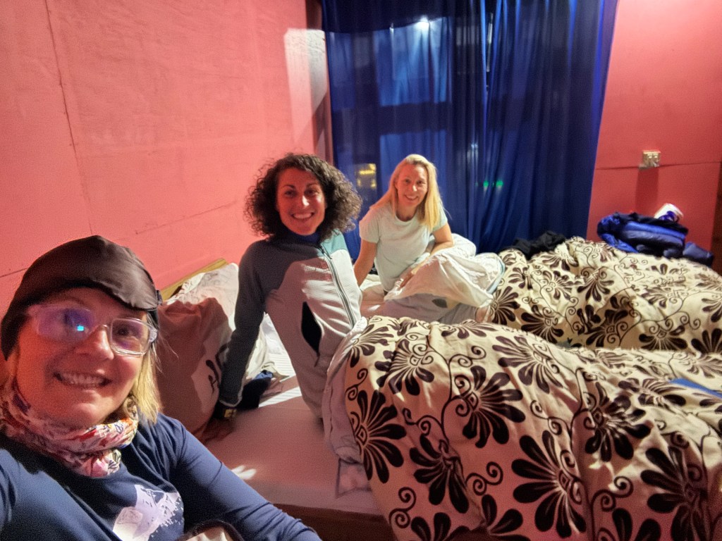 D’ailleurs, l’entrée dans le lit est compliqué tellement il est froid. J’ai même demandé un supplément couverture. Ma coloc du soir, Corinne, a chaud. Nous n’avons vraiment pas toutes et tous les mêmes sensibilités !