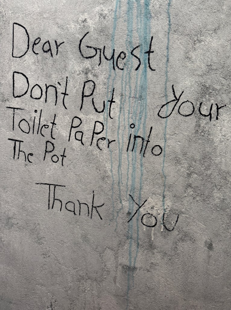 À la Guest House, il n’y a pas de douche, pas d’évier dans les toilettes, pas de chasse d’eau mais la wifi bombarde alors j’en profite pour quelques correspondances en prenant le soleil qui cogne derrière la fenêtre. Je m’assoupis même un peu.