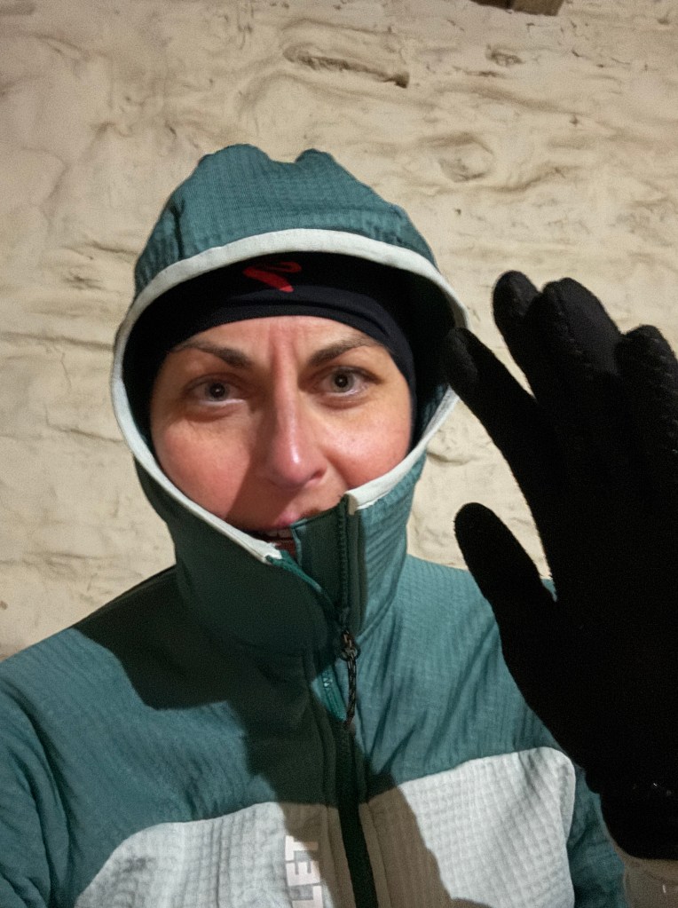 Pour le coup, ce n’est pas le froid. Emmitouflée dans ma cagoule, mes gants, ma veste, mes 2 polos dont 1 polaire, mes 2 paires de chaussettes + chaufferettes, mes 3 couvertures, j’a même réussi à faire tomber les gants pendant la nuit.