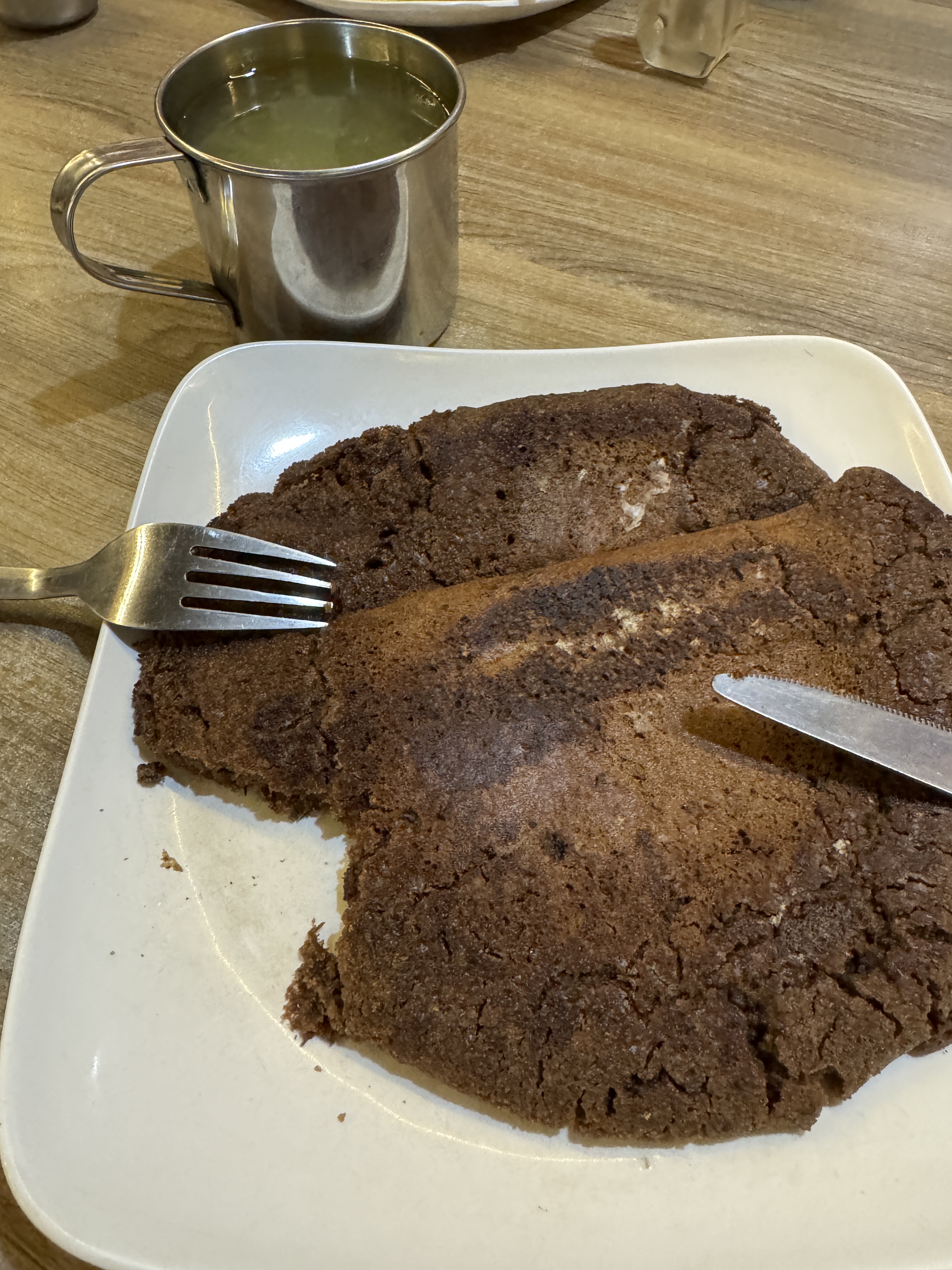 Le pancake chocolat est bien meilleur que celui d’hier, plus fondant et moins épais.