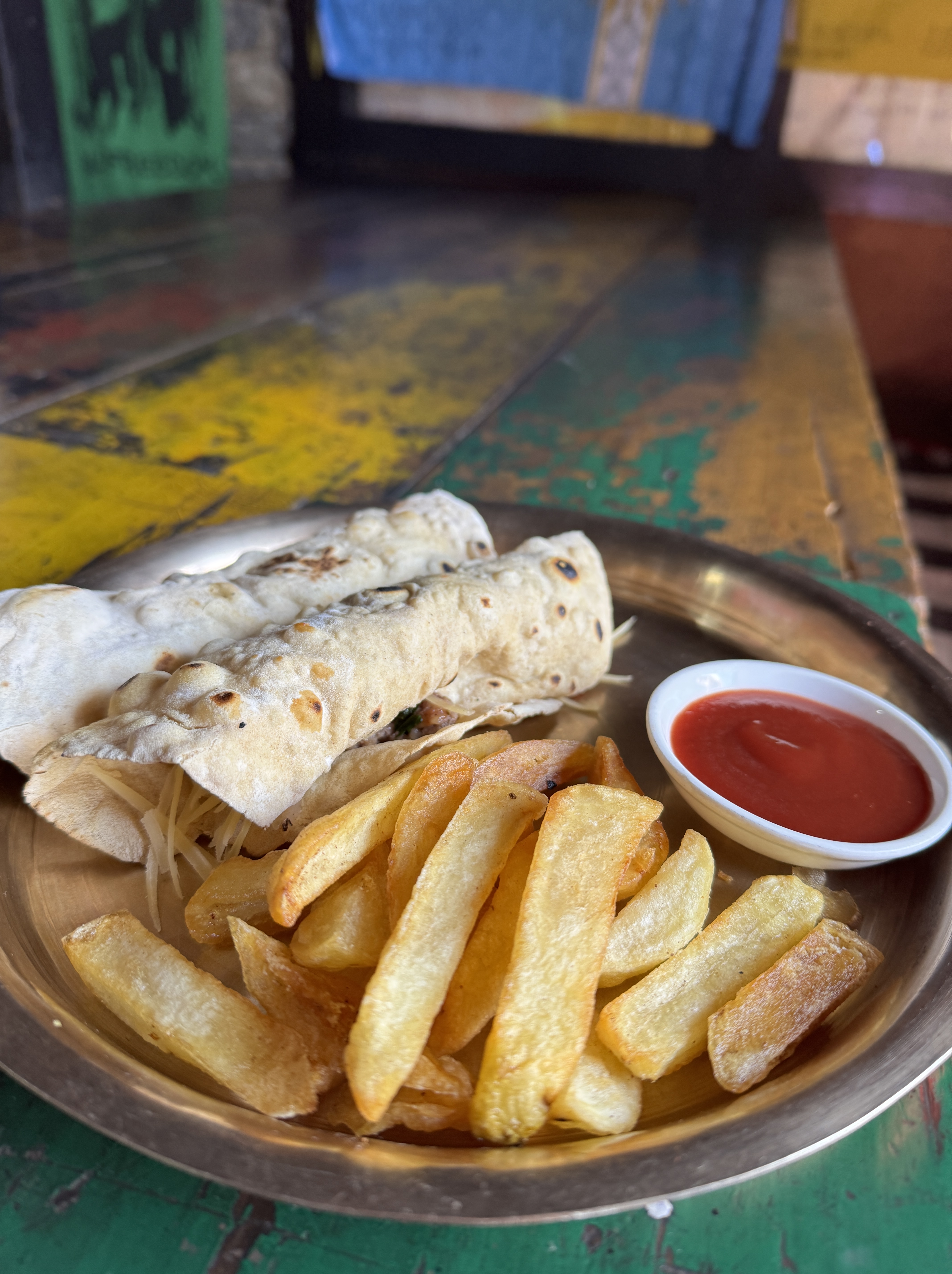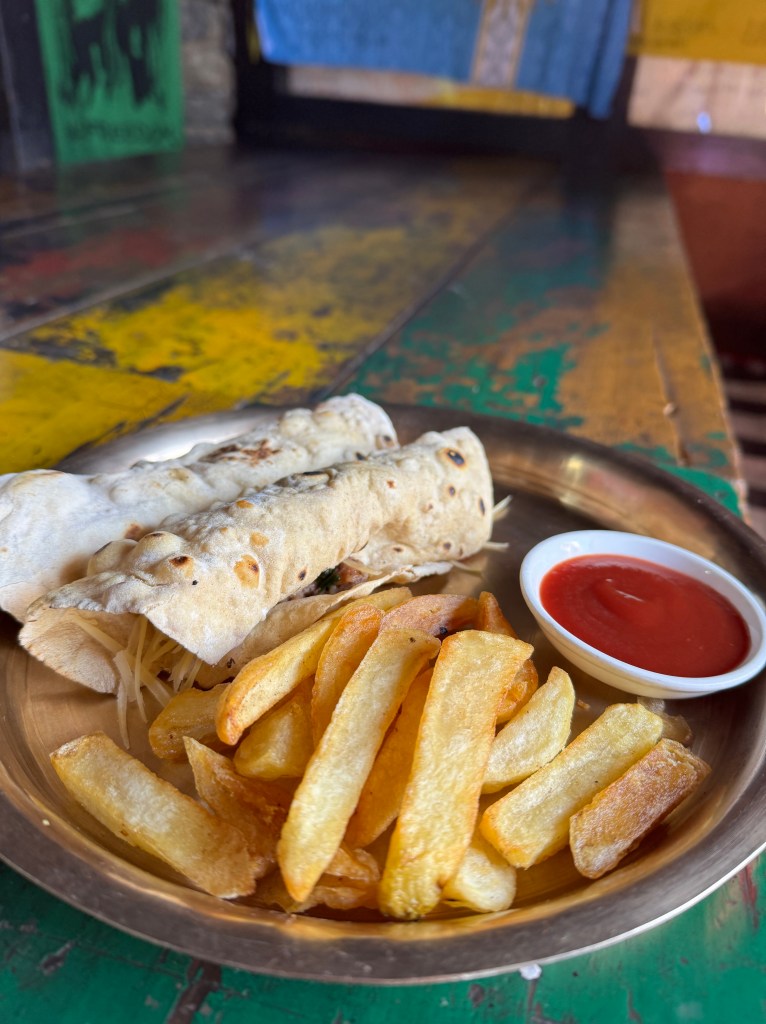 En effet, nous filons d’abord au restaurant, Hotel Bob Marley. J’avoue, je suis un peu grognon. Est-ce que c’est lié ? Je n’apprécie pas particulièrement mon plat, un wrap roll yak tomato onion cheese. Il était temps de goûter la viande locale, trop dangereux à faire en altitude pour des raisons sanitaires.