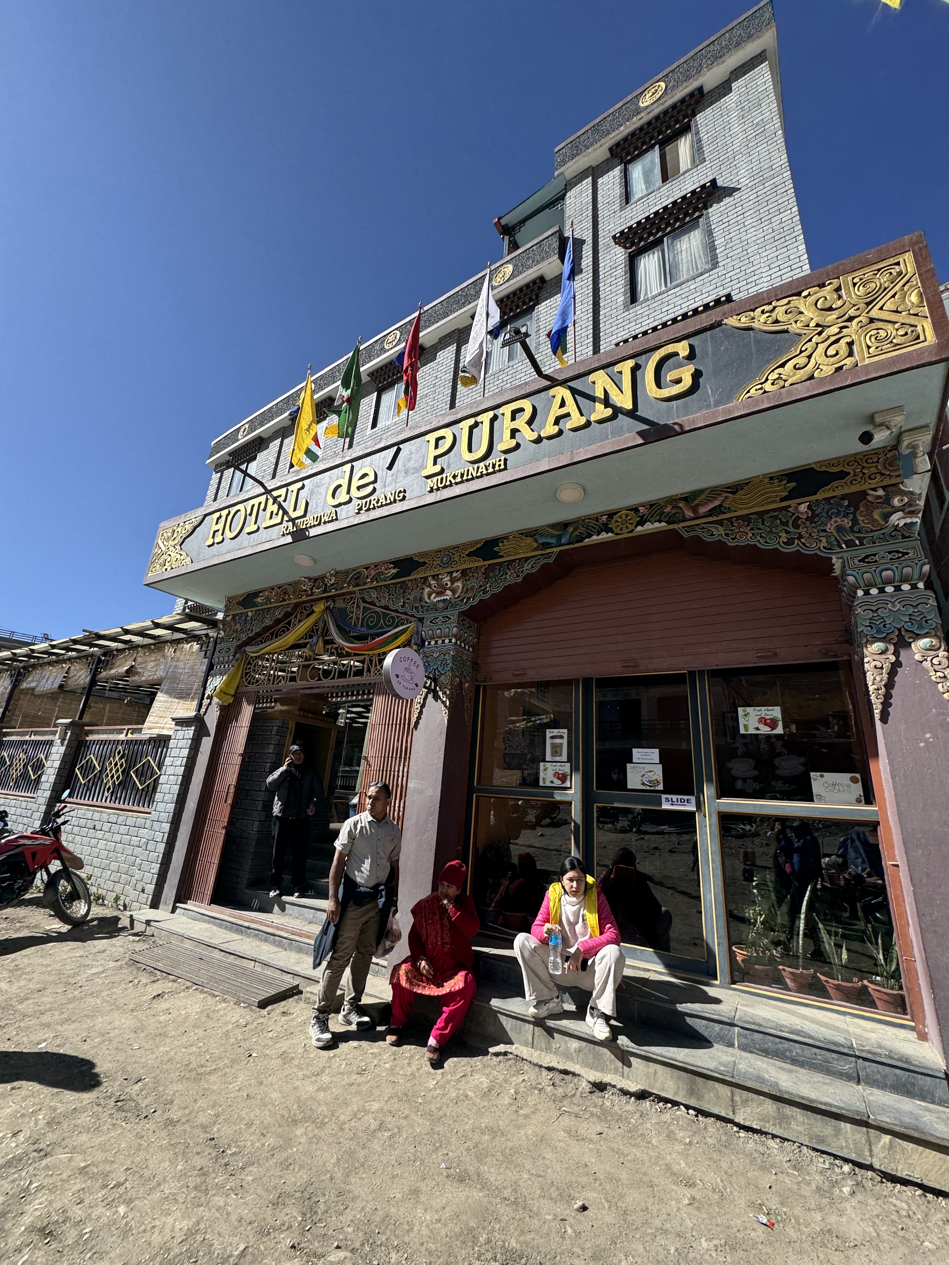 Par chance, notre hôtel Purang, est proche de l’entrée de la ville. L’établissement est plutôt sympa, des prises électriques, de vrais lits, du papier toilettes, des serviettes, du savon, le rêve… seul hic ? C’est un frigo ! On pensait même que la clim était en route mais il n’y a pas de clim… Même si nous sommes redescendus, nous sommes toujours à 3 750 m et malgré le soleil, les températures restent fraîches (une dizaine de degrés). Voilà qui ne va pas aider mon rhume !