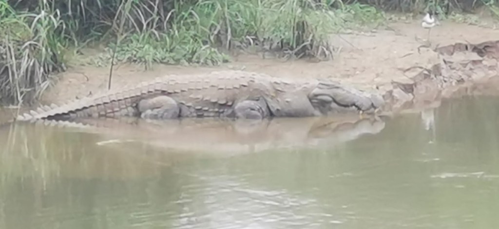 Nous apercevons bien une cigogne et les yeux d’un croco mais il faut bien regarder au loin.