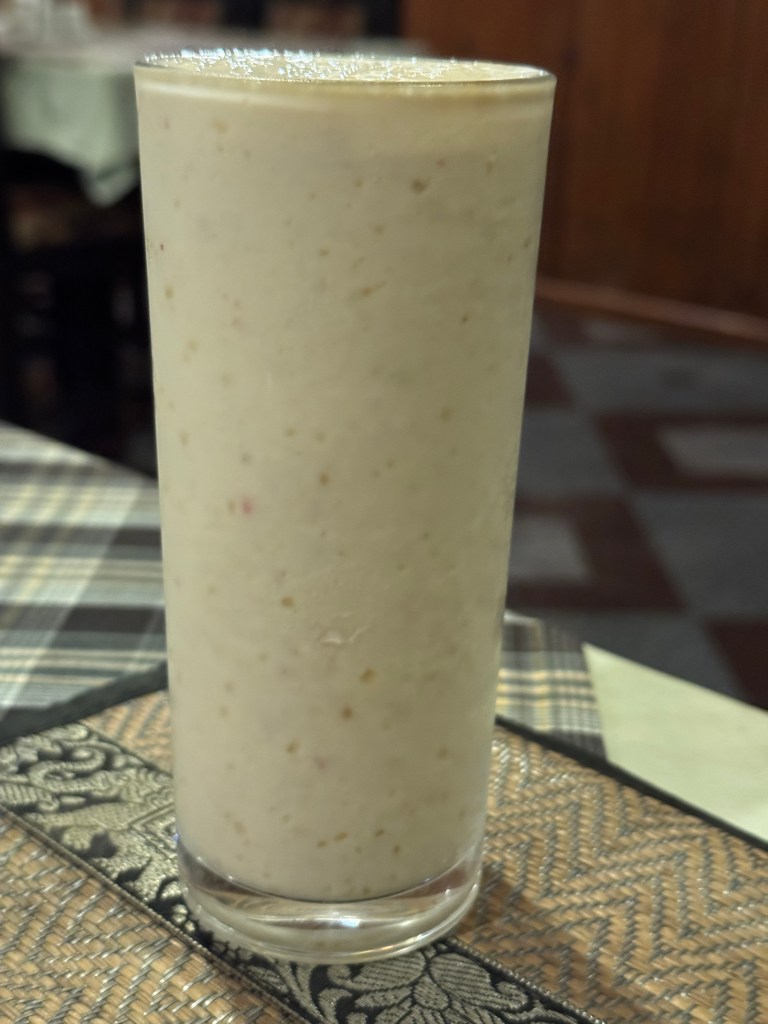 Je fais trinquer le Lassi Banana et on débrief de notre voyage.