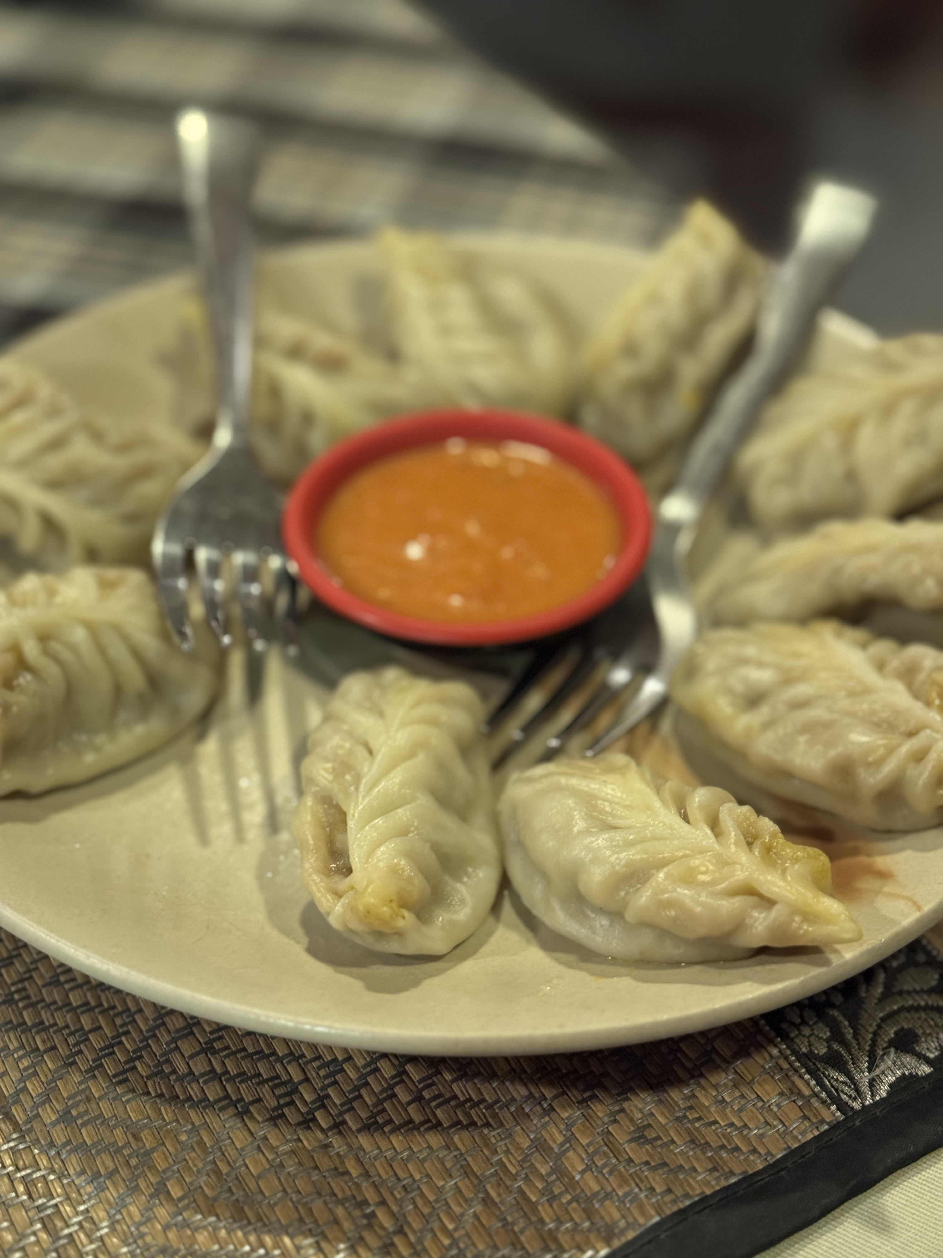 Je retourne rapido à la chambre changer de chaussures, déposer le petit shopping et je rejoins la troupe à l’hôtel Riverside pour mon dernier dîner népalais.
