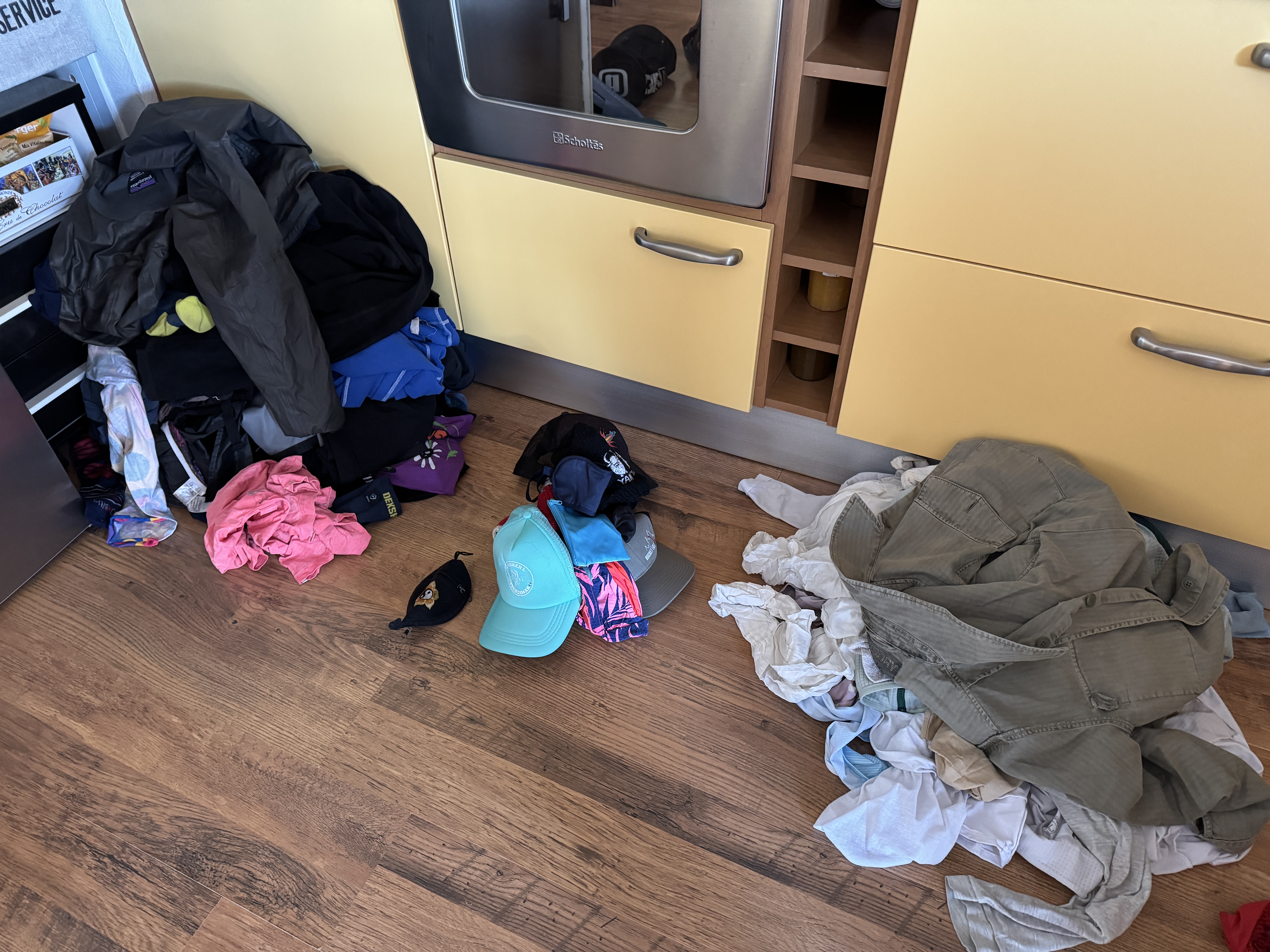 Je prends du temps pour faire des étirements, passer en revue les affaires sèches, pas sèches, commencer à trier pour le grand bagage, le bagage sac à dos, etc.
